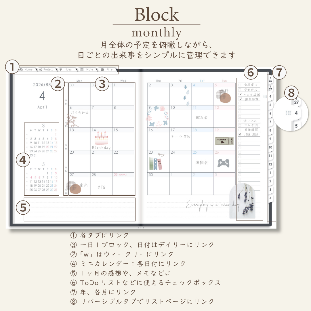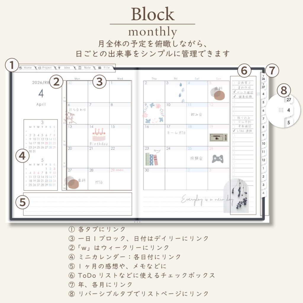 2026年4月始まりしごと手帳[月曜始まり/週:ブロック/日:1DAY/色:モノ]