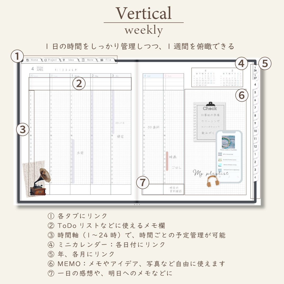 2026年4月始まりしごと手帳[月曜始まり/週:バーチカル/日:2DAY/色:モノ]