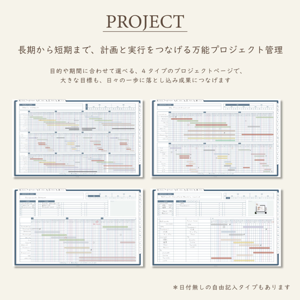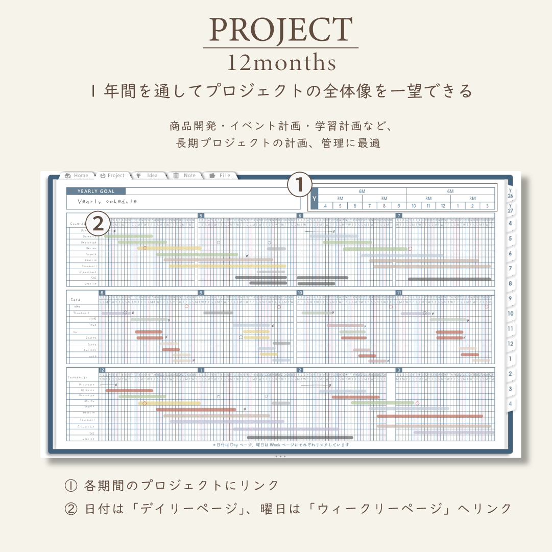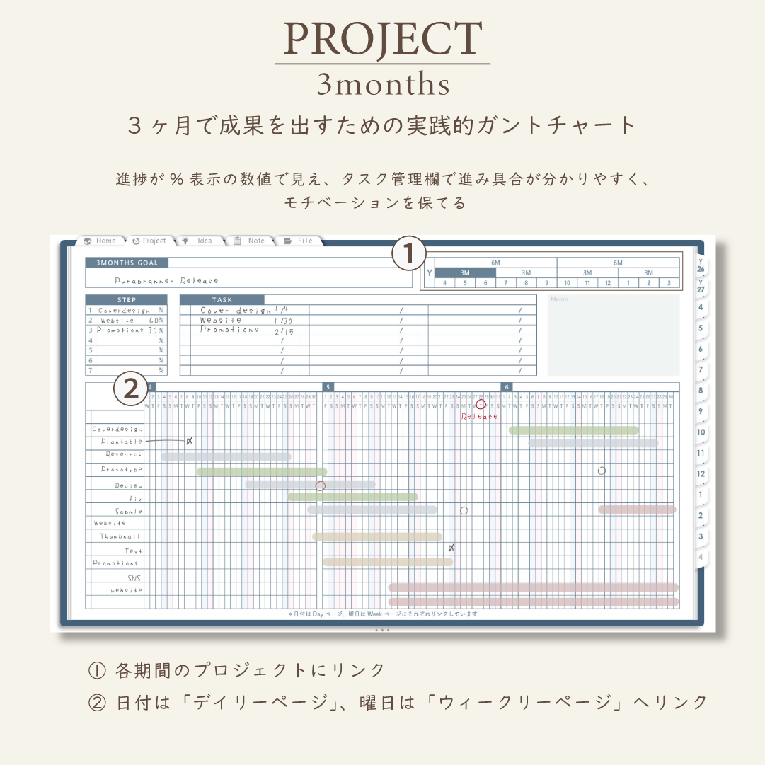 ・1年/半年/3ヶ月/1ヶ月を見渡せるガントチャート