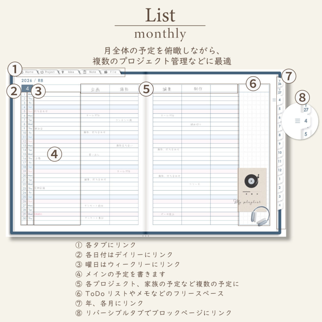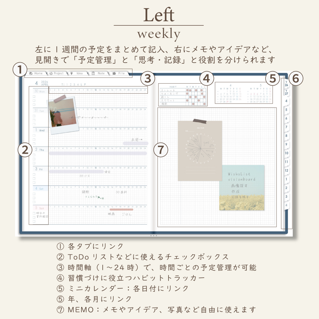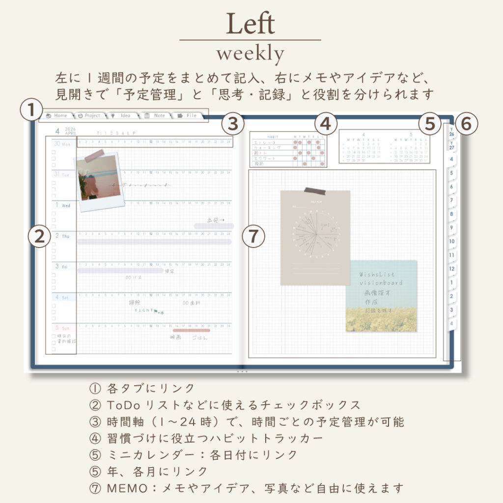 • 週間ページ:Block/Left/Vertical