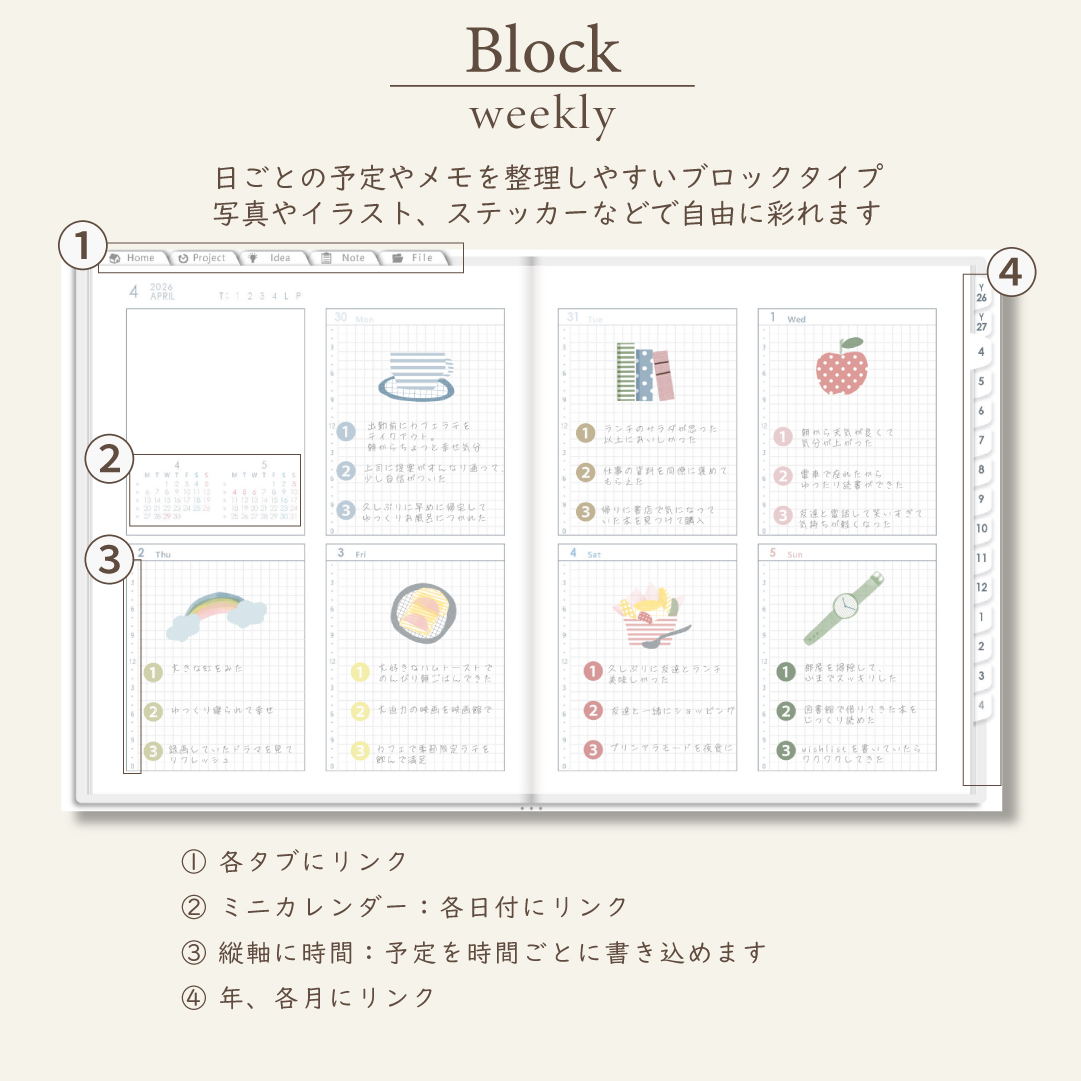 2026年4月始まりしごと手帳[月曜始まり/週:ブロック/日:2DAY/色:スノー]
