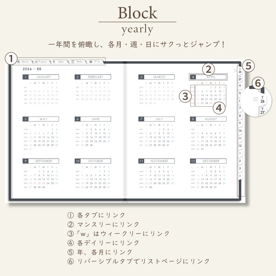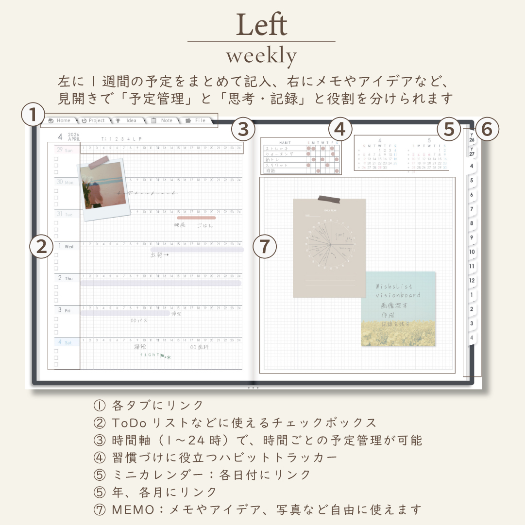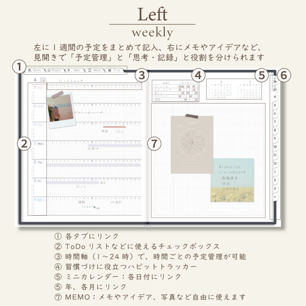 • 週間ページ:Block/Left/Vertical