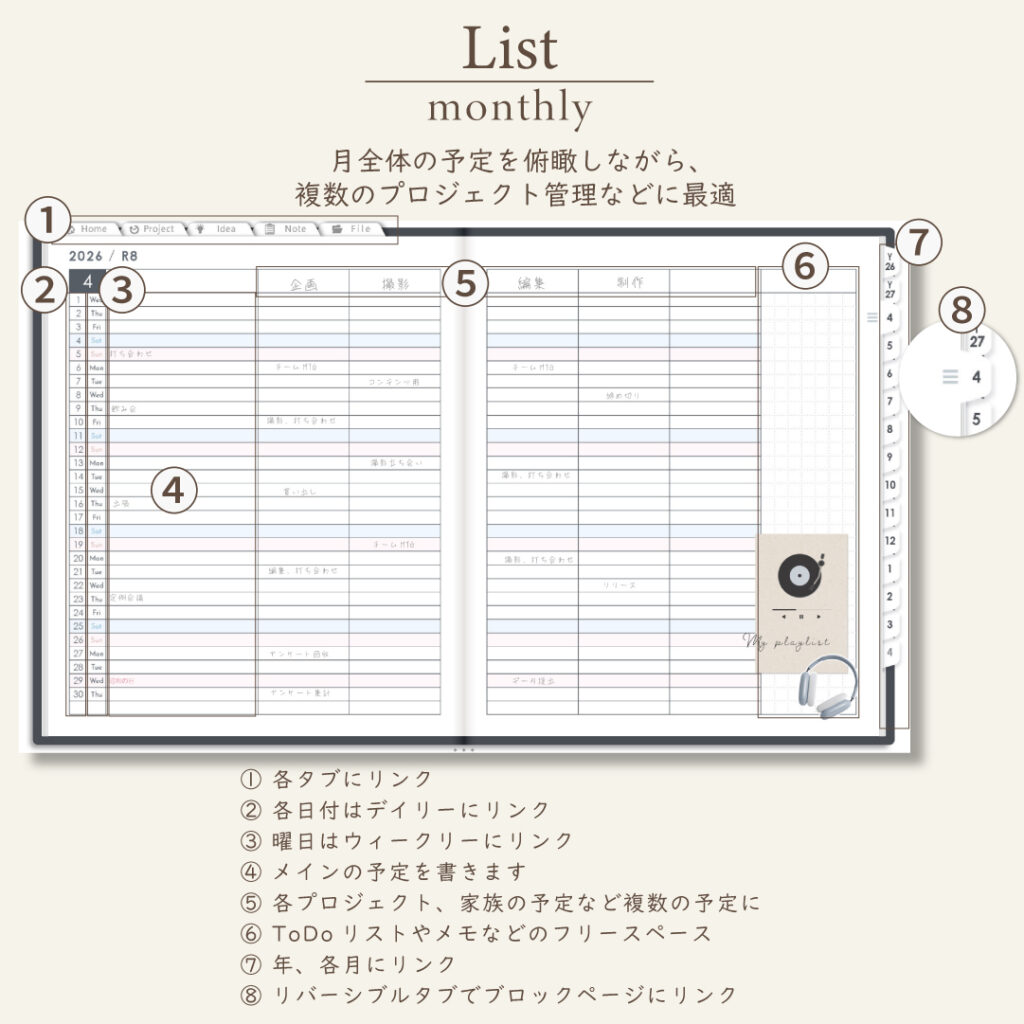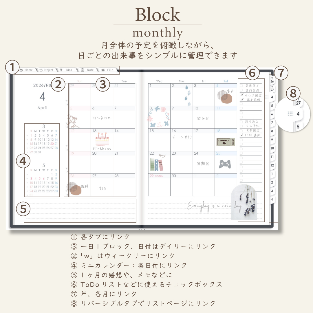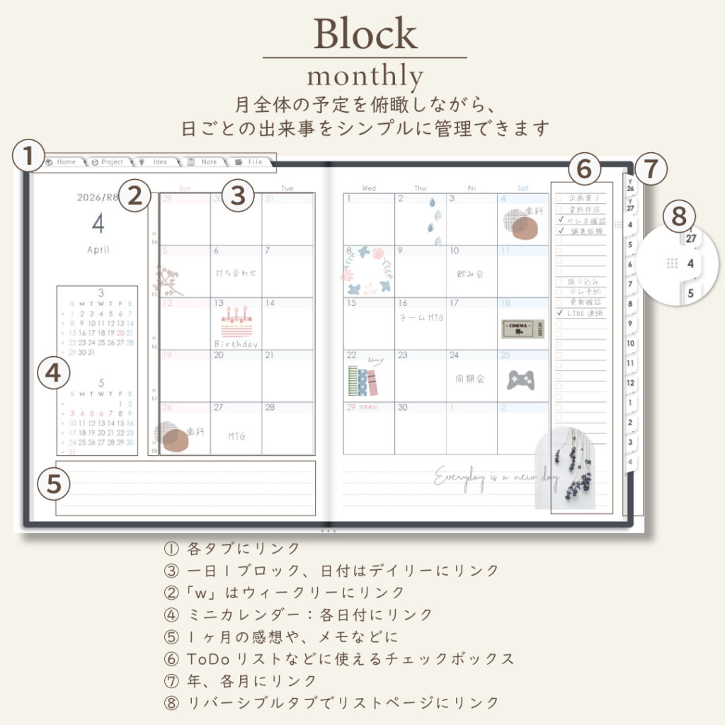 • 週間ページ:Block/Left/Vertical