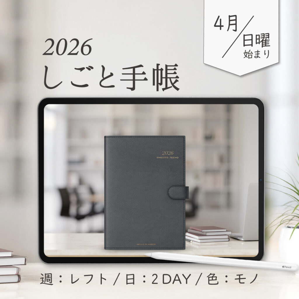 2026年4月始まりしごと手帳[日曜始まり/週:レフト/日:2DAY/色:モノ]