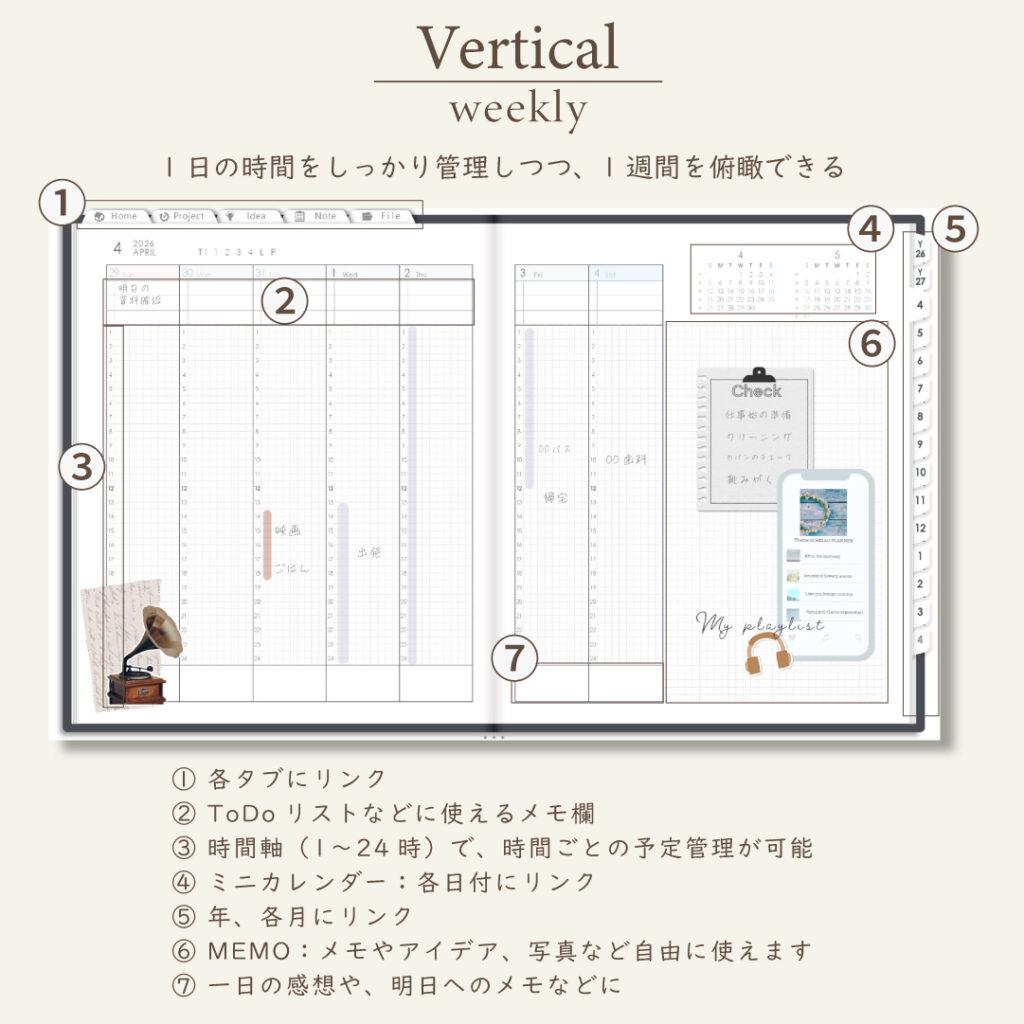 • 週間ページ:Block/Left/Vertical