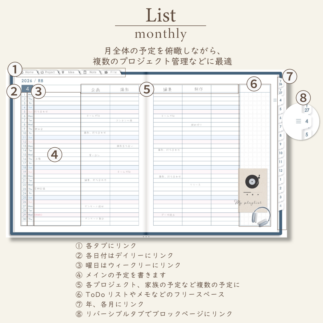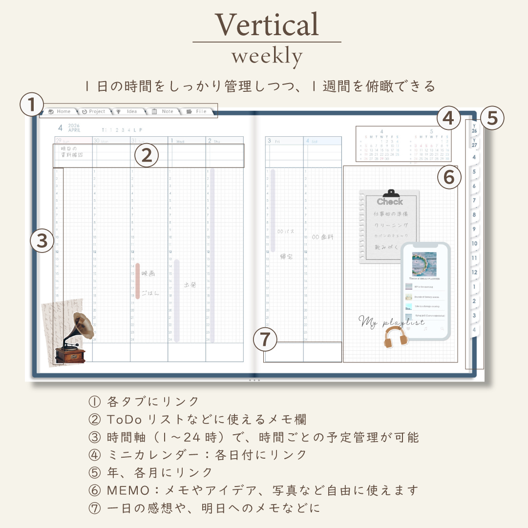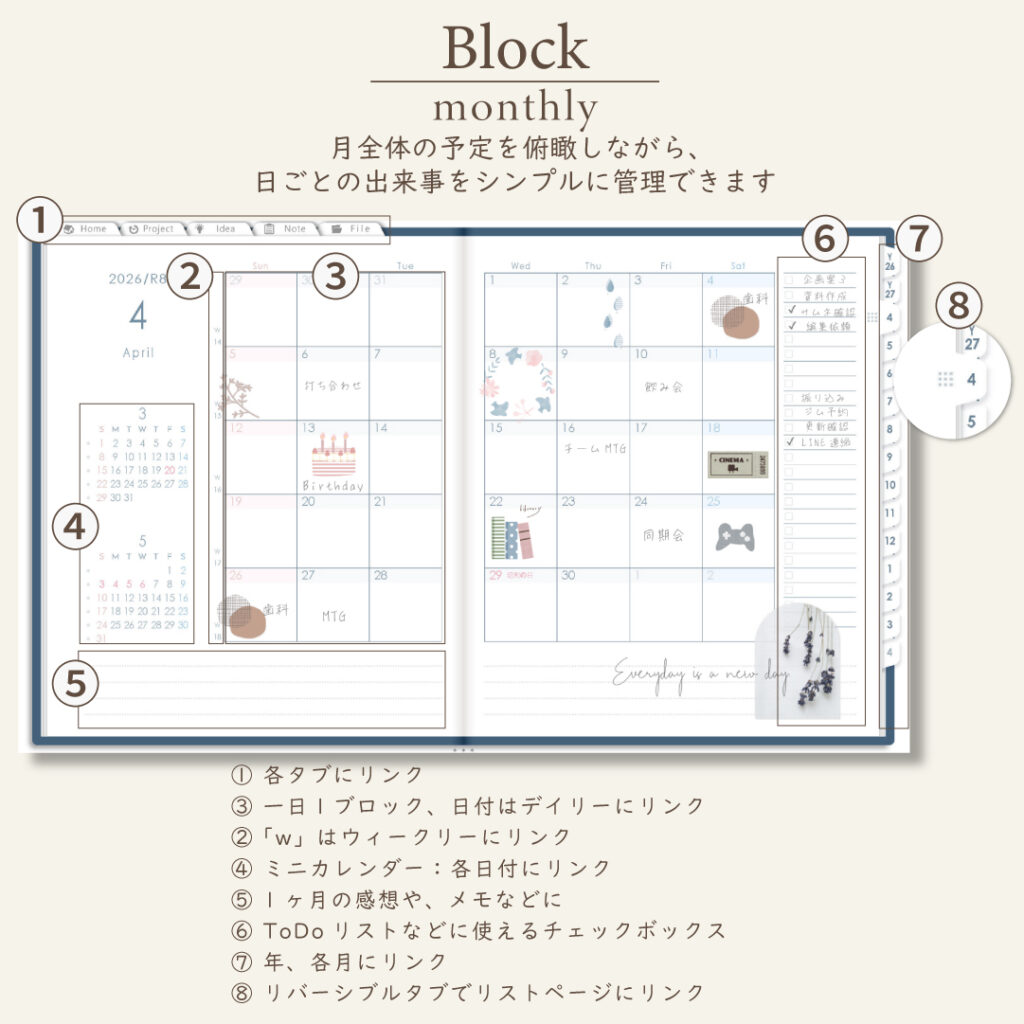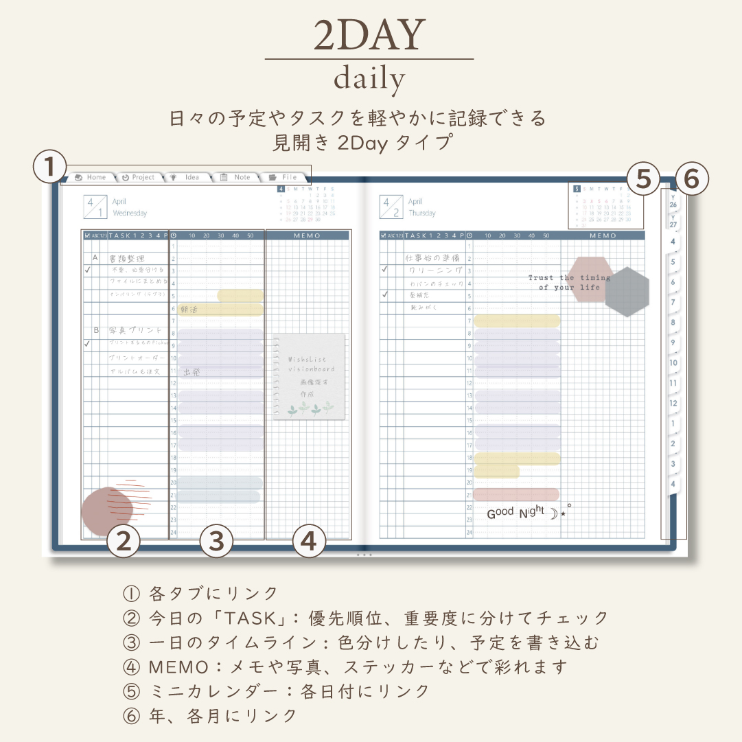 2026年4月始まりしごと手帳[日曜始まり/週:バーチカル/日:2DAY/色:ネイビー]