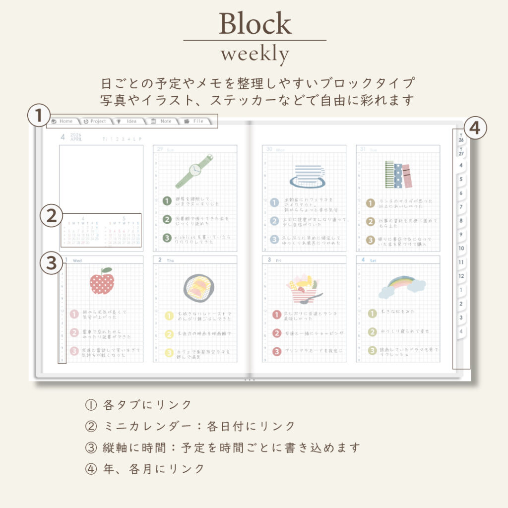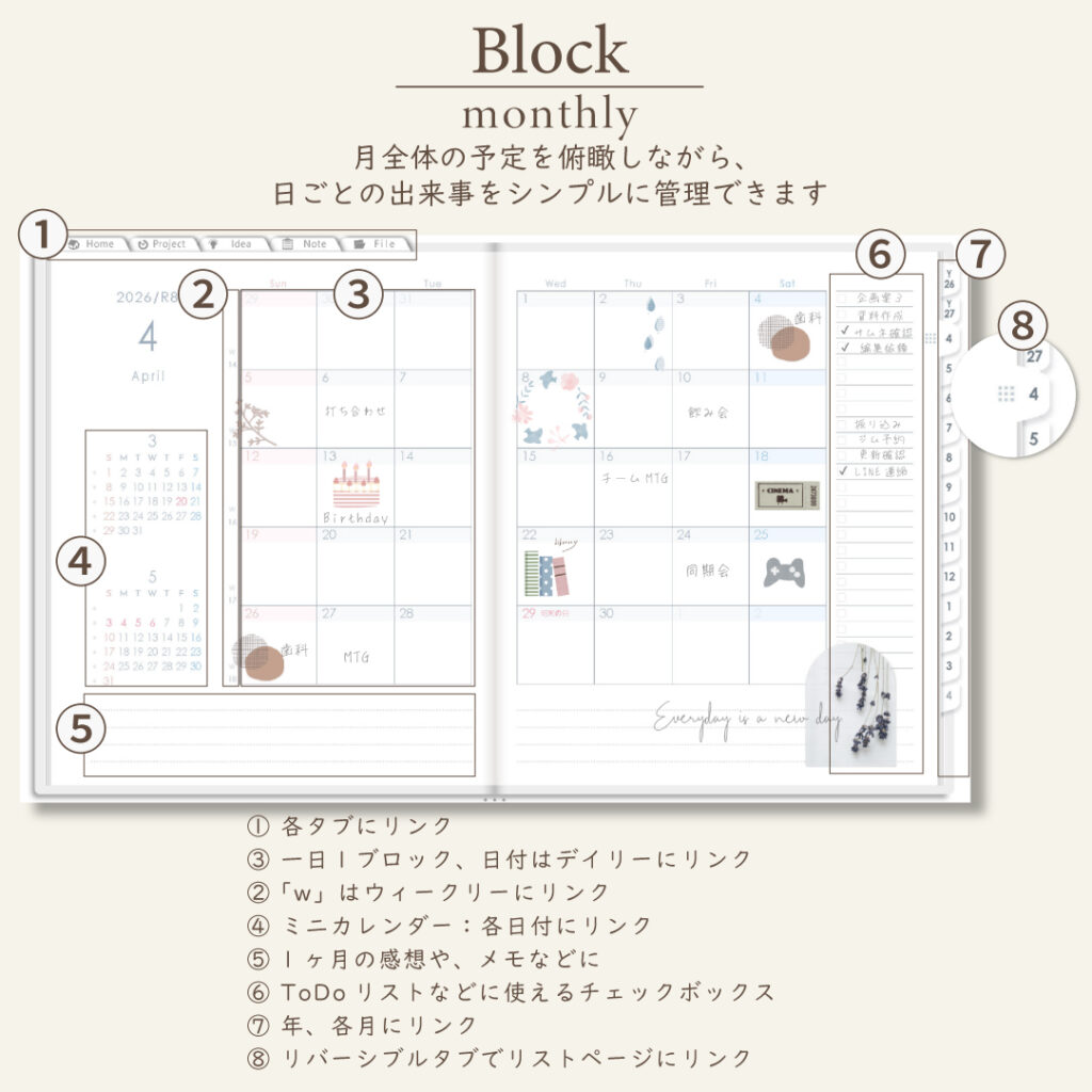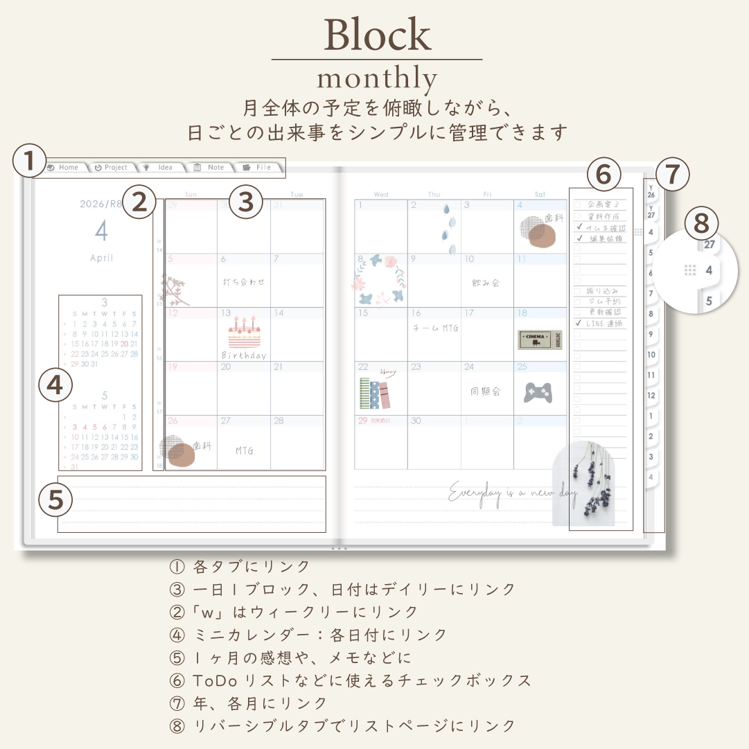 2026年4月始まりしごと手帳[日曜始まり/週:ブロック/日:2DAY/色:スノー]