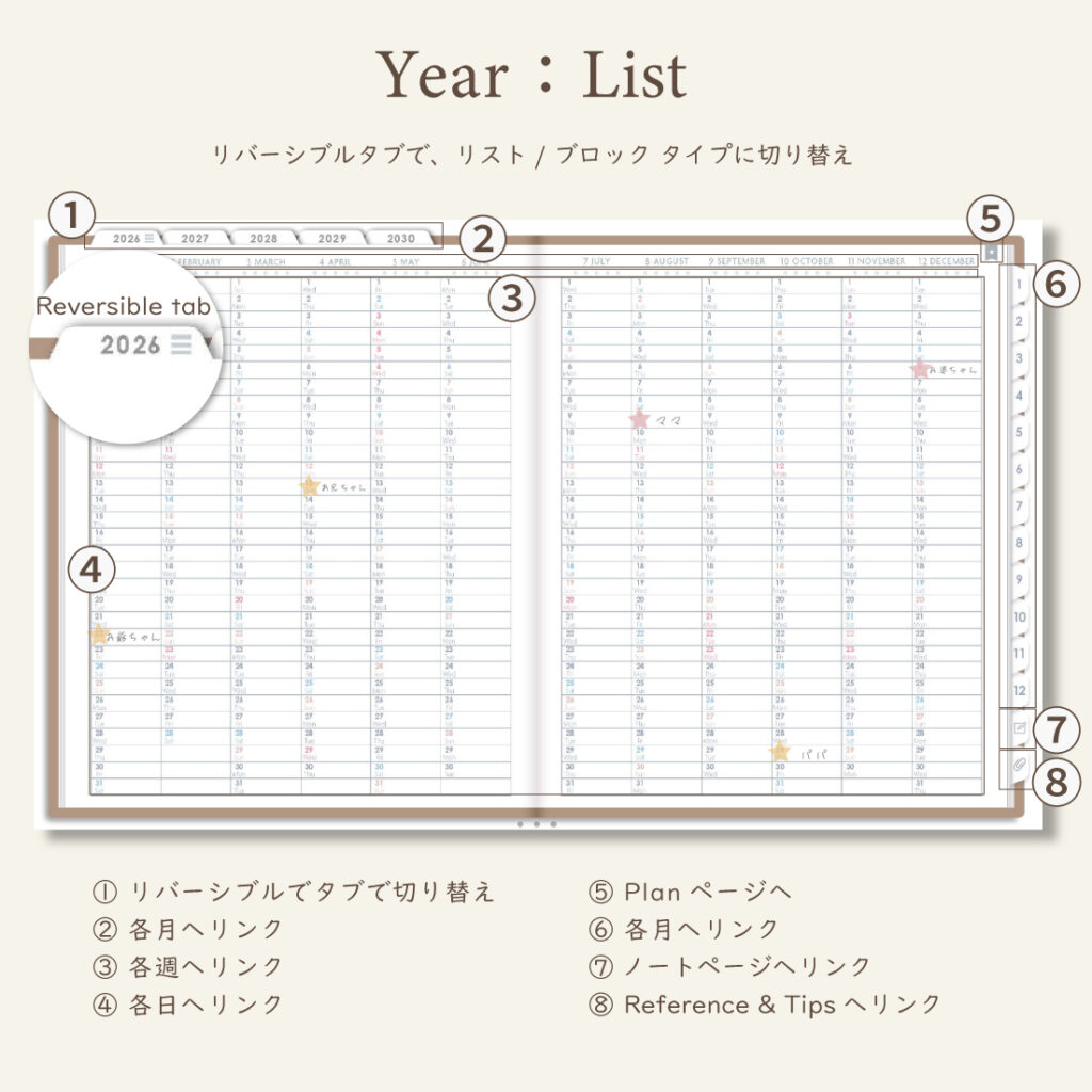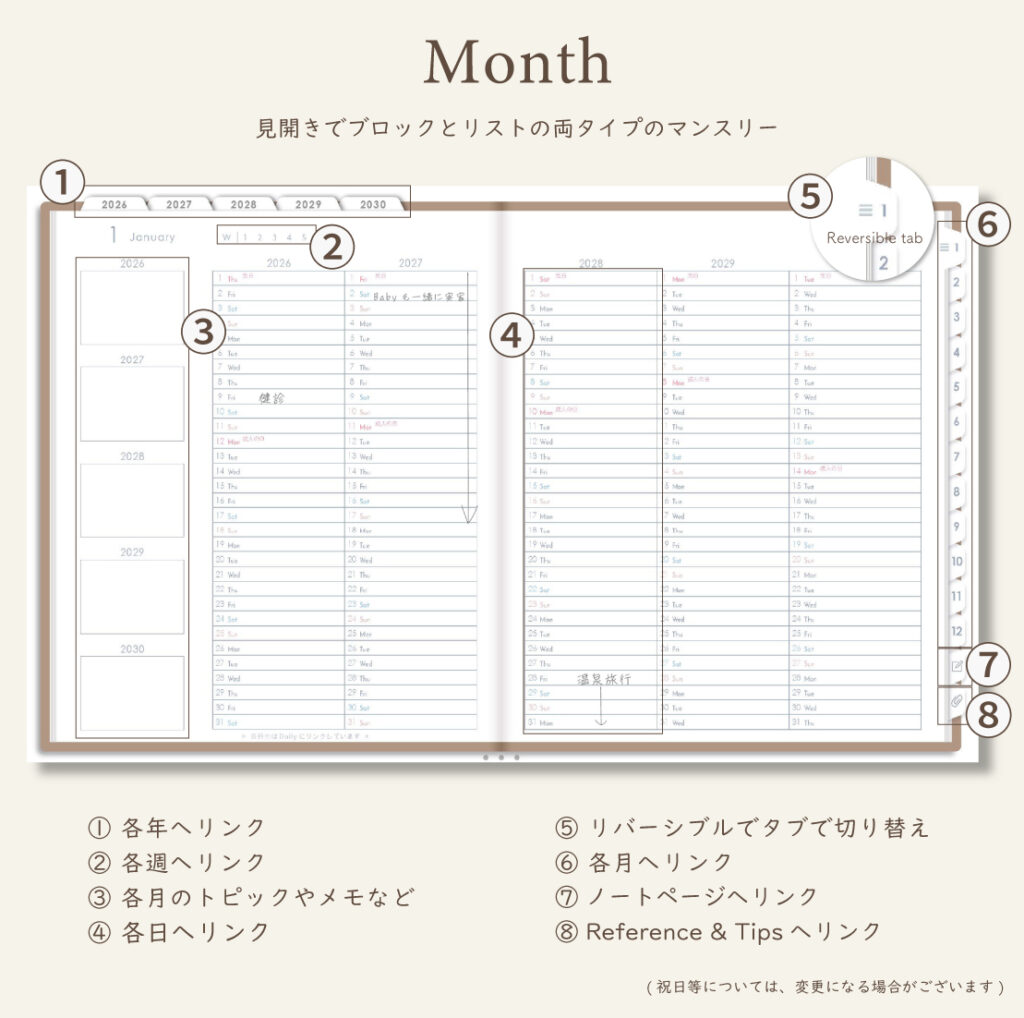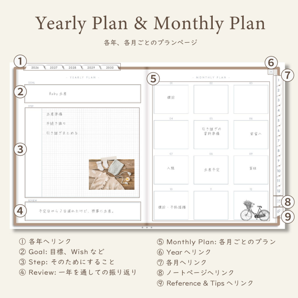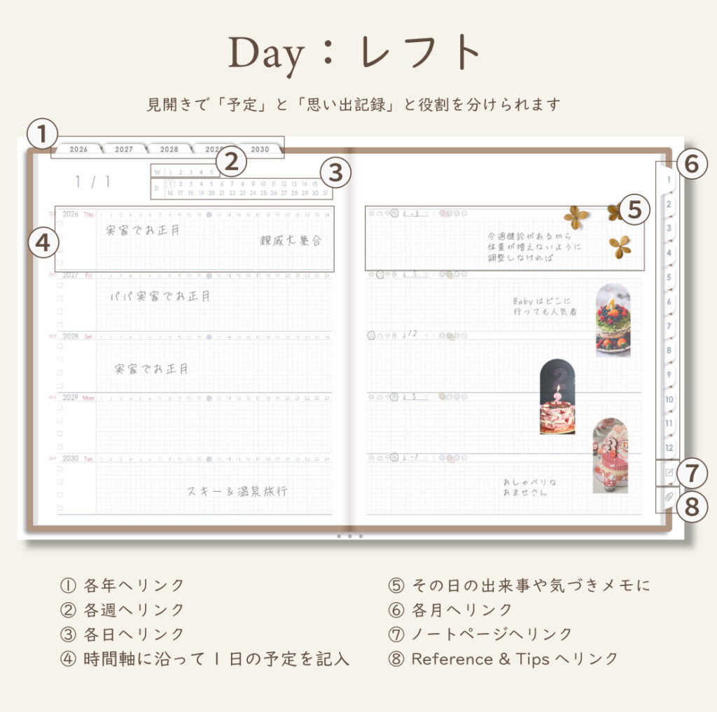 5年間の予定も、心の動きも、この一冊に積み重ねていけます。