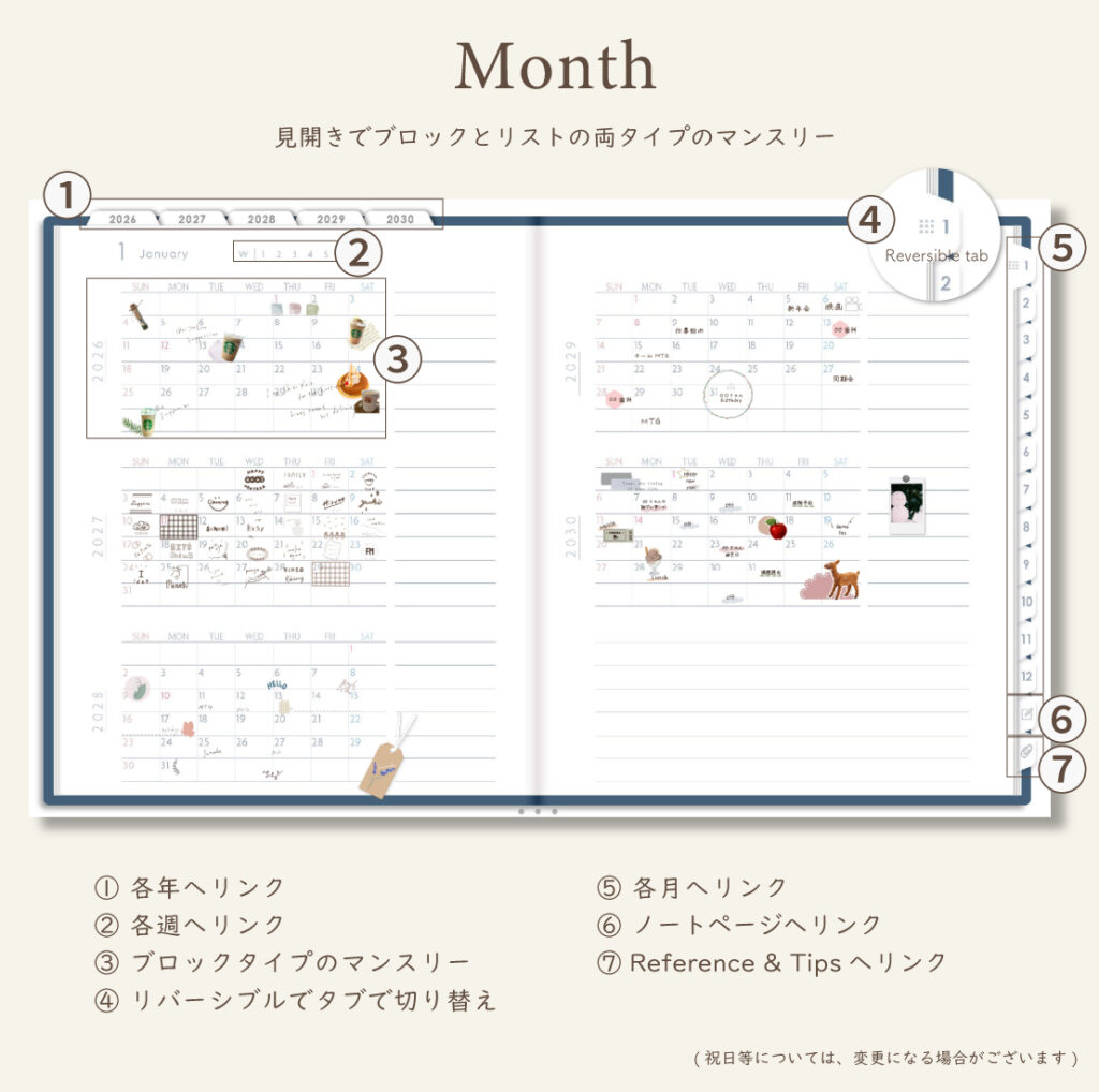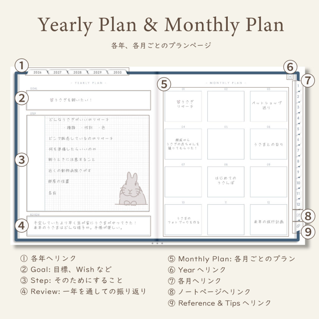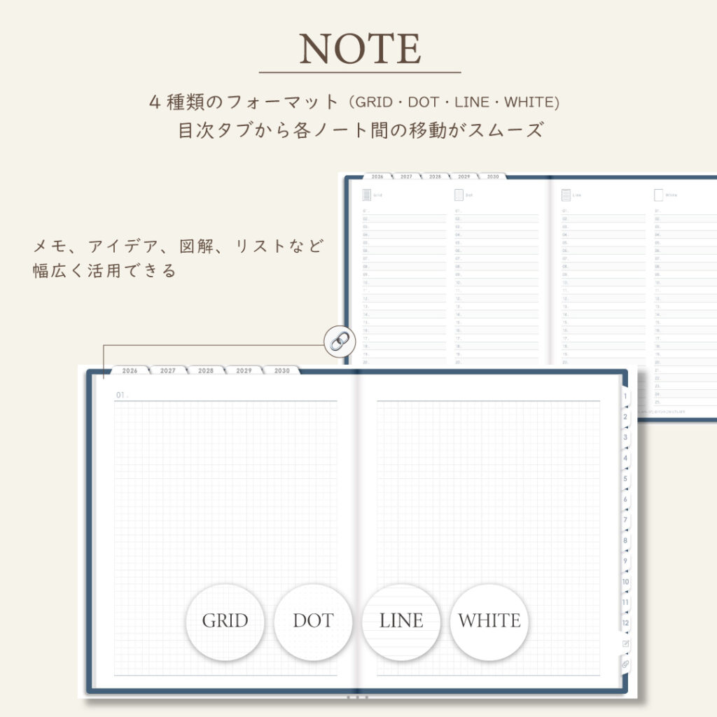 5年間の予定も、心の動きも、この一冊に積み重ねていけます。