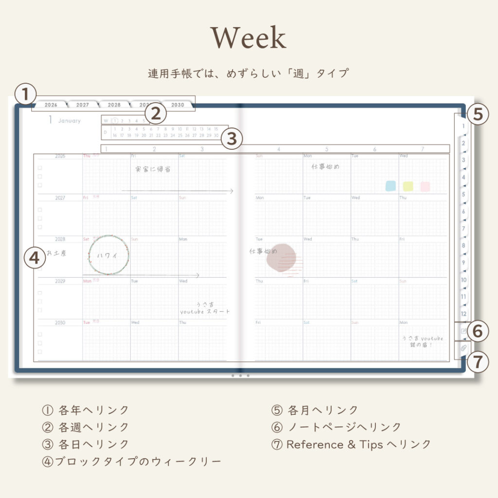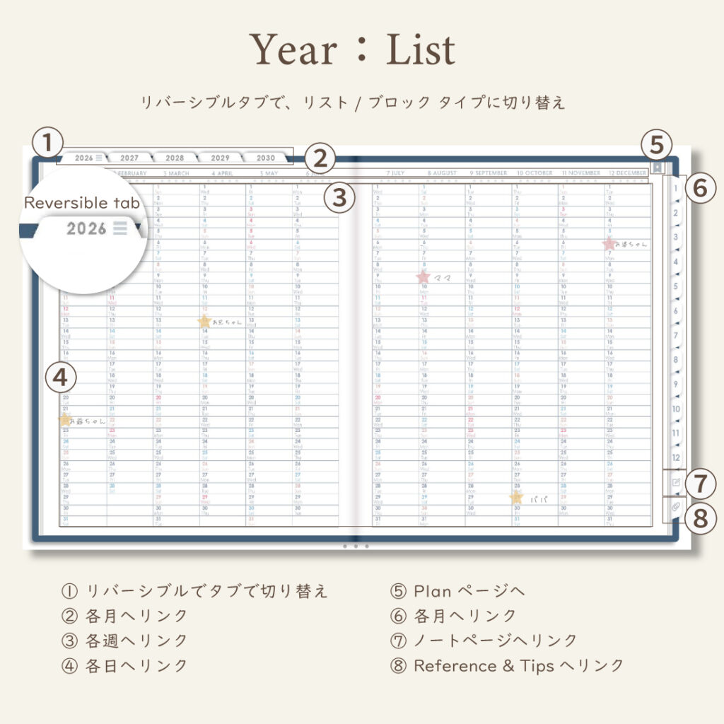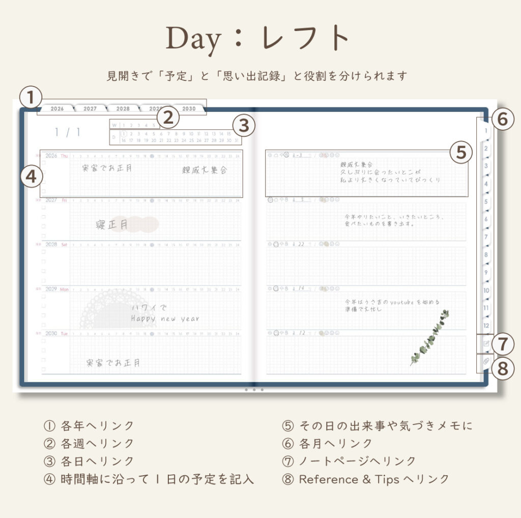 5年間の予定も、心の動きも、この一冊に積み重ねていけます。