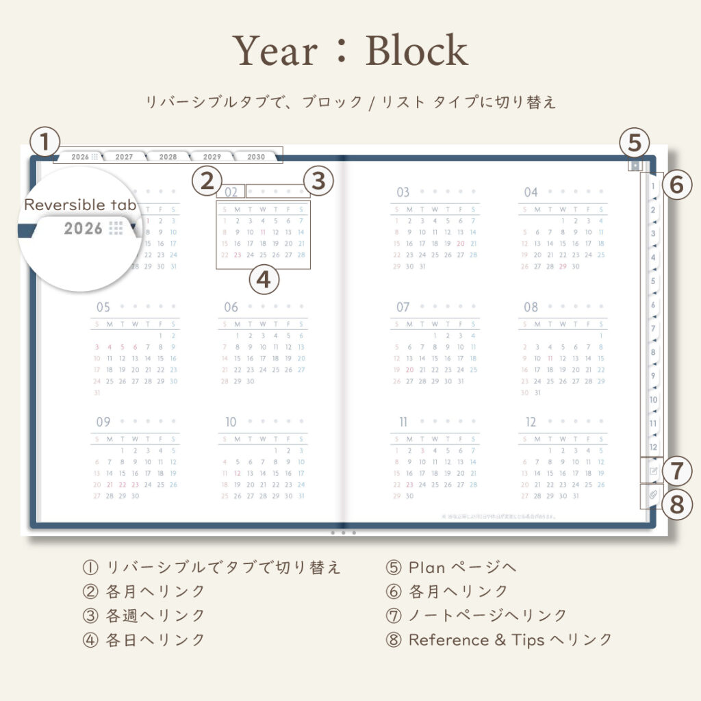 2026年始まり「5年手帳」(2026-2030)[日:レフト/色:ネイビー]
