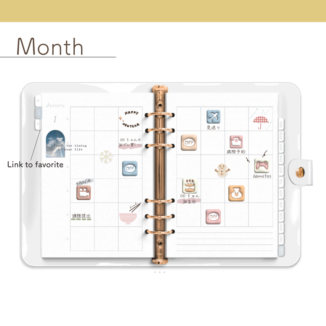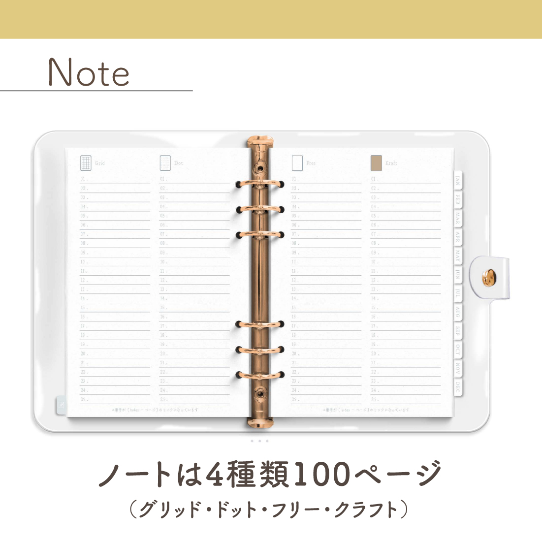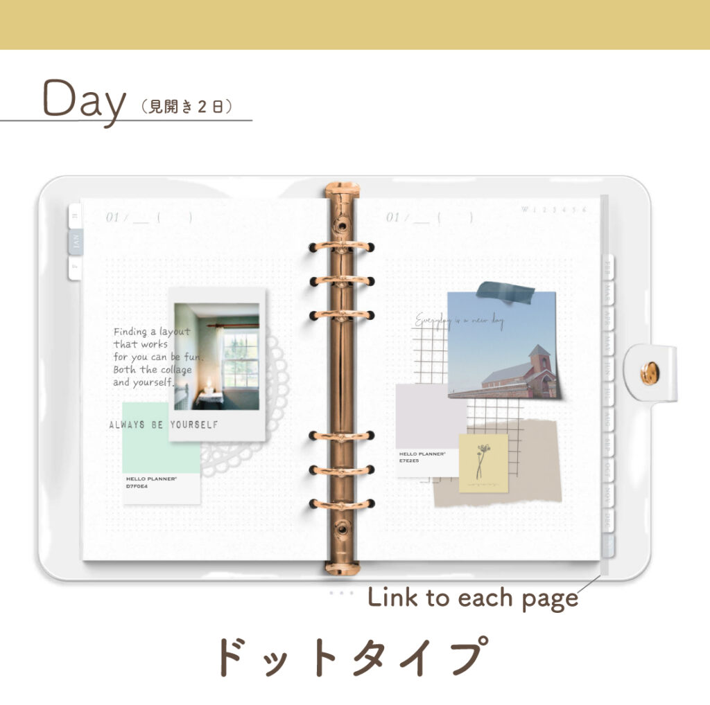 「Clear Binder 」[週:ブロック/日:ドット/色:ゴールド]