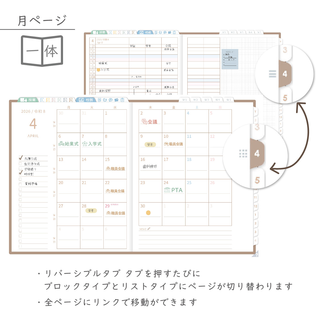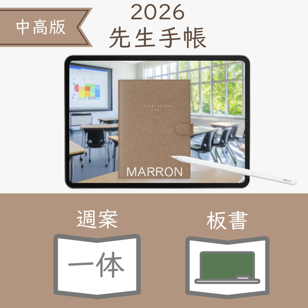 2026年度「先生手帳(中高版)」【レギュラー:一体/黒板】【色:マロン】