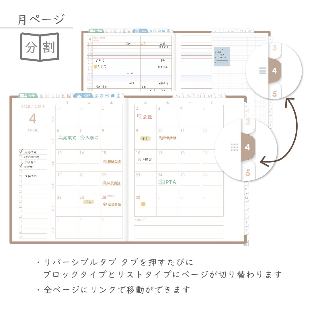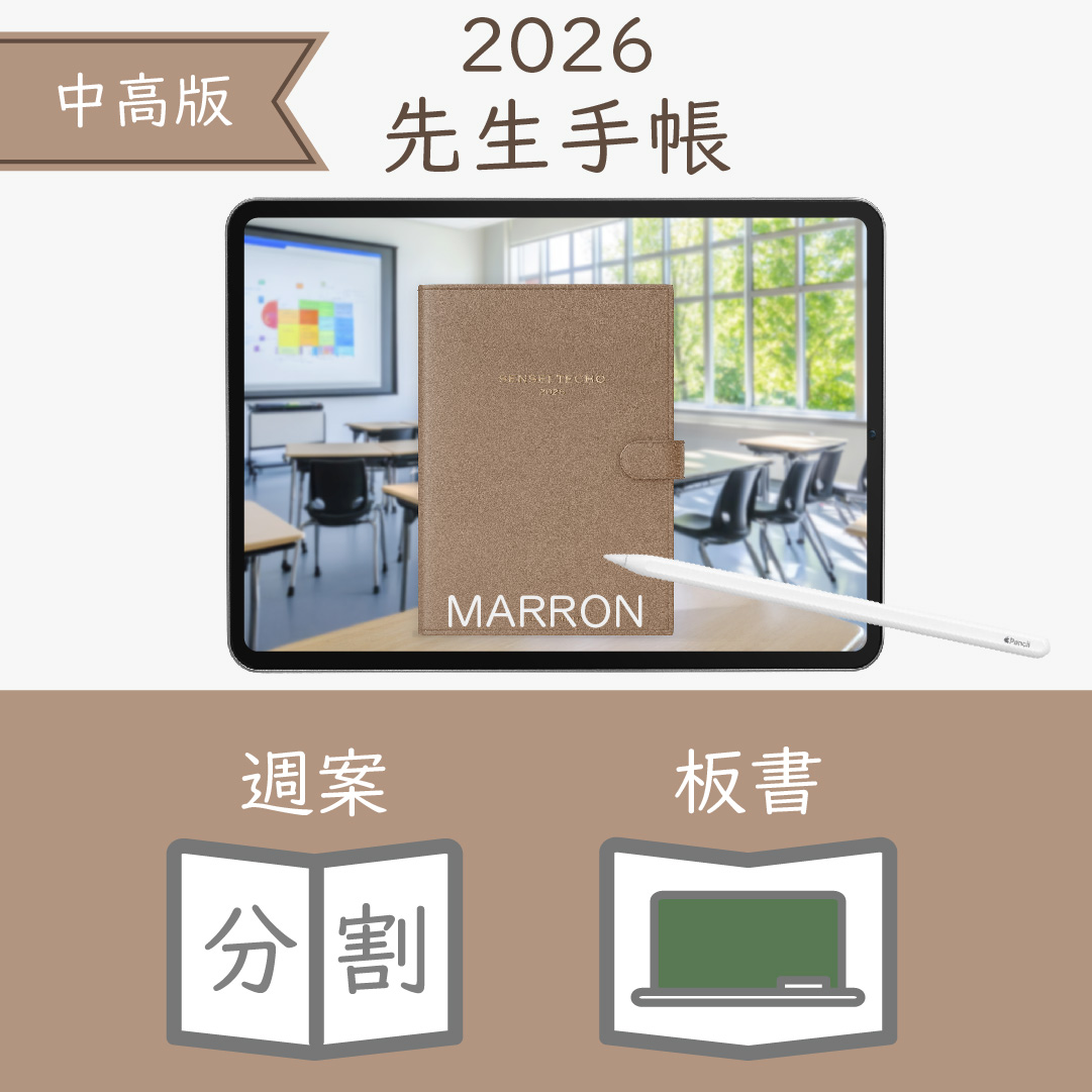 2026年度「先生手帳(中高版)」【レギュラー:分割/黒板】【色:マロン】
