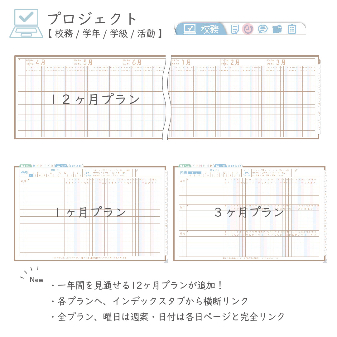 ・校務、学年、学級、活動など内容ごとに12ヶ月/3ヶ月/1ヶ月ごとのプロジェクトシート