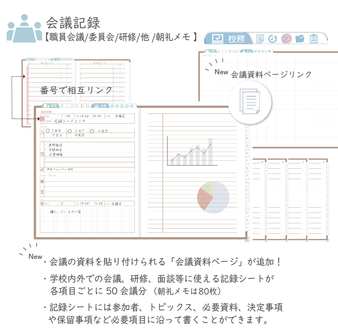 ・職員会議、委員会、研修、他会議それぞれ50回分の記録ページ