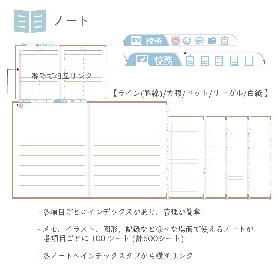 ※2:1週間見開きタイプ/週案+記録の分割タイプ/週案+貼付けスペースの貼付けタイプ