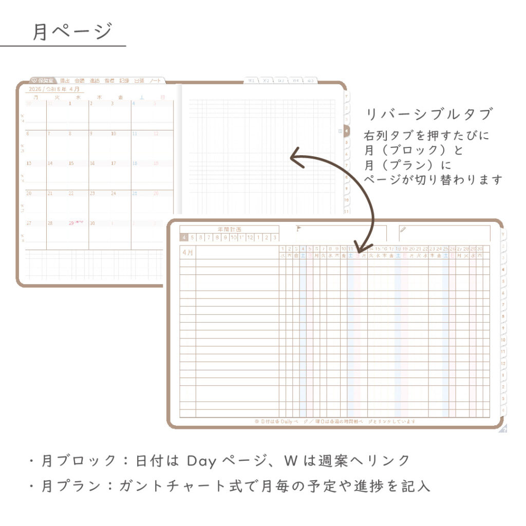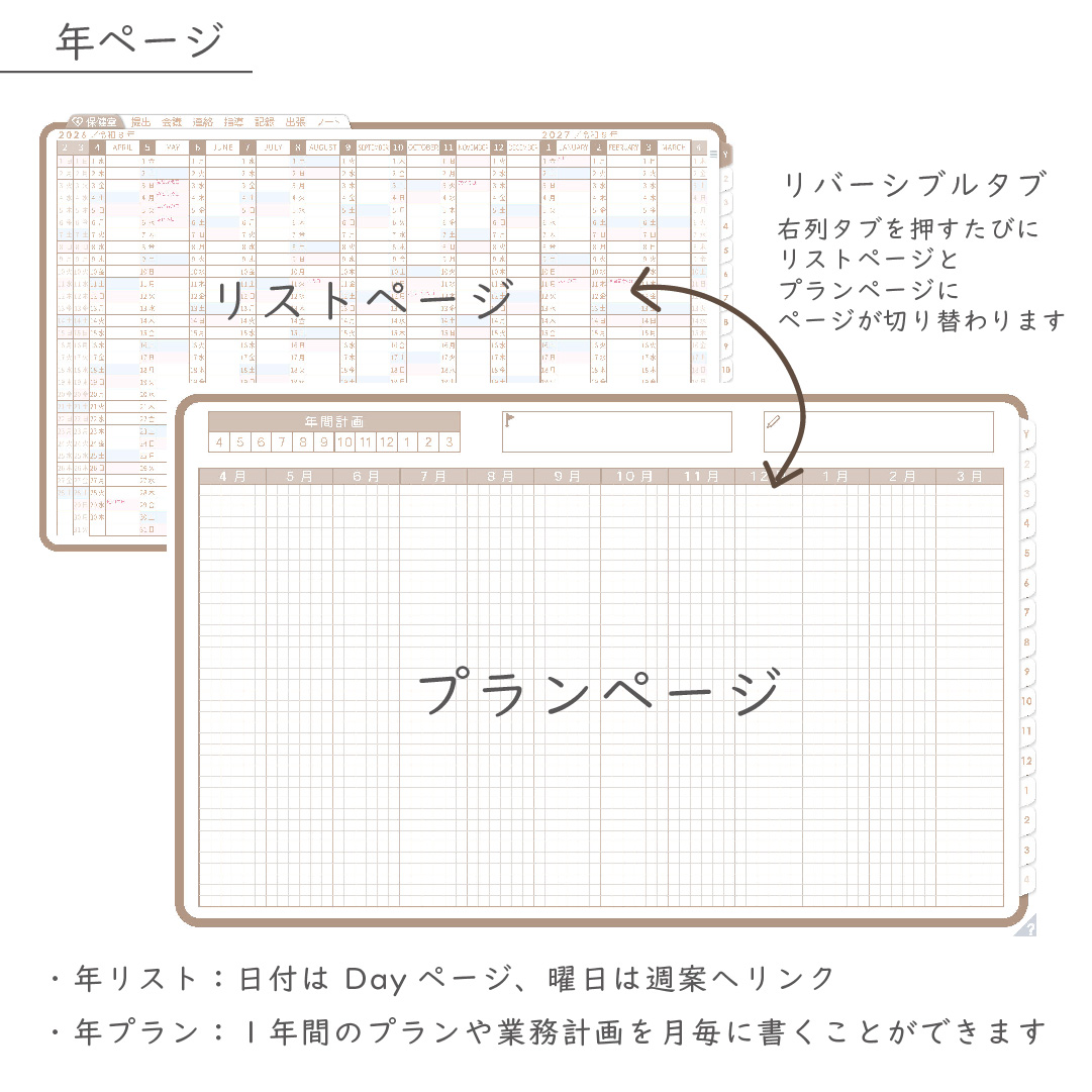 ・年/月に「プランページ」付き(予定と計画を分けて管理)