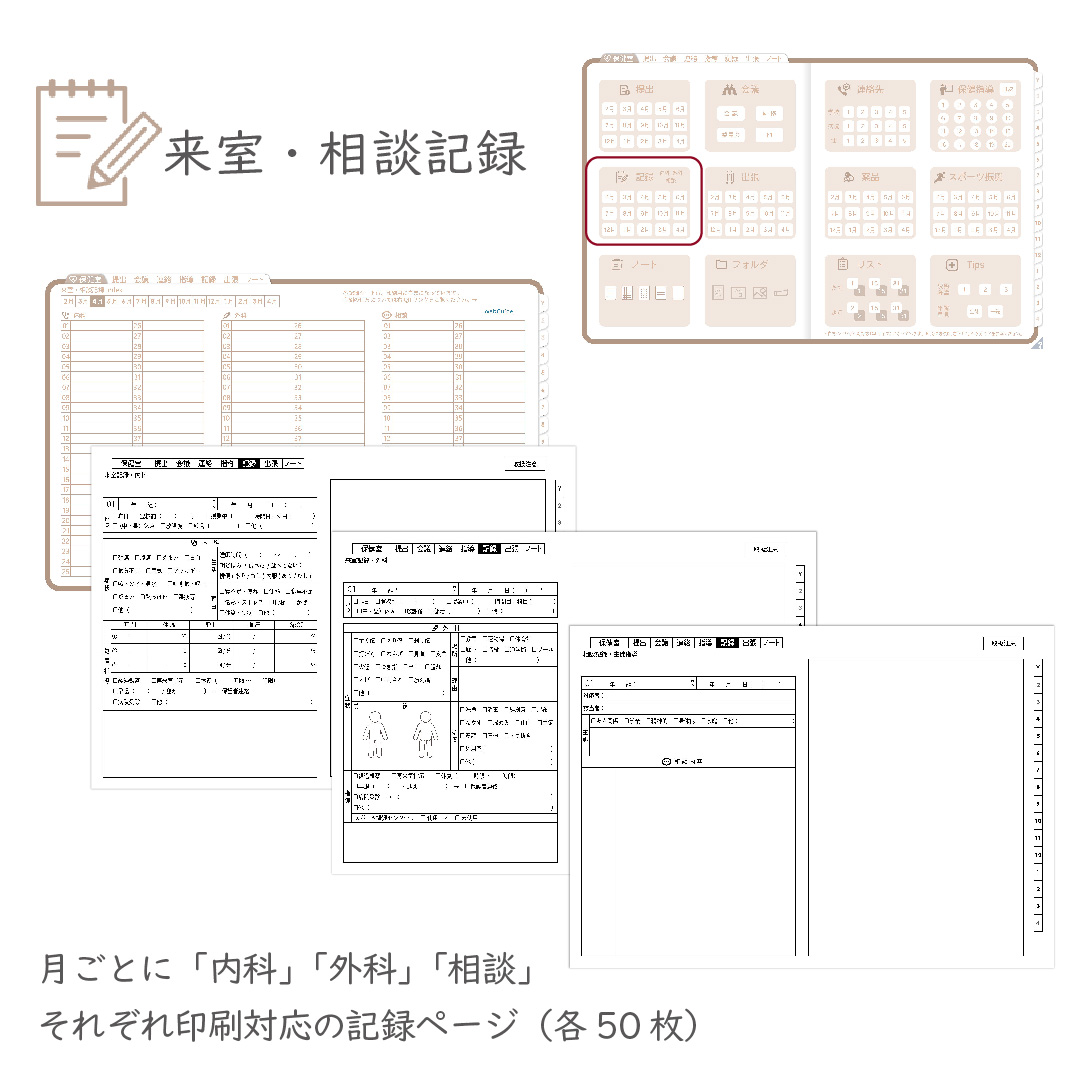 保健室で実際に使う業務内容から、必要なシートを厳選。