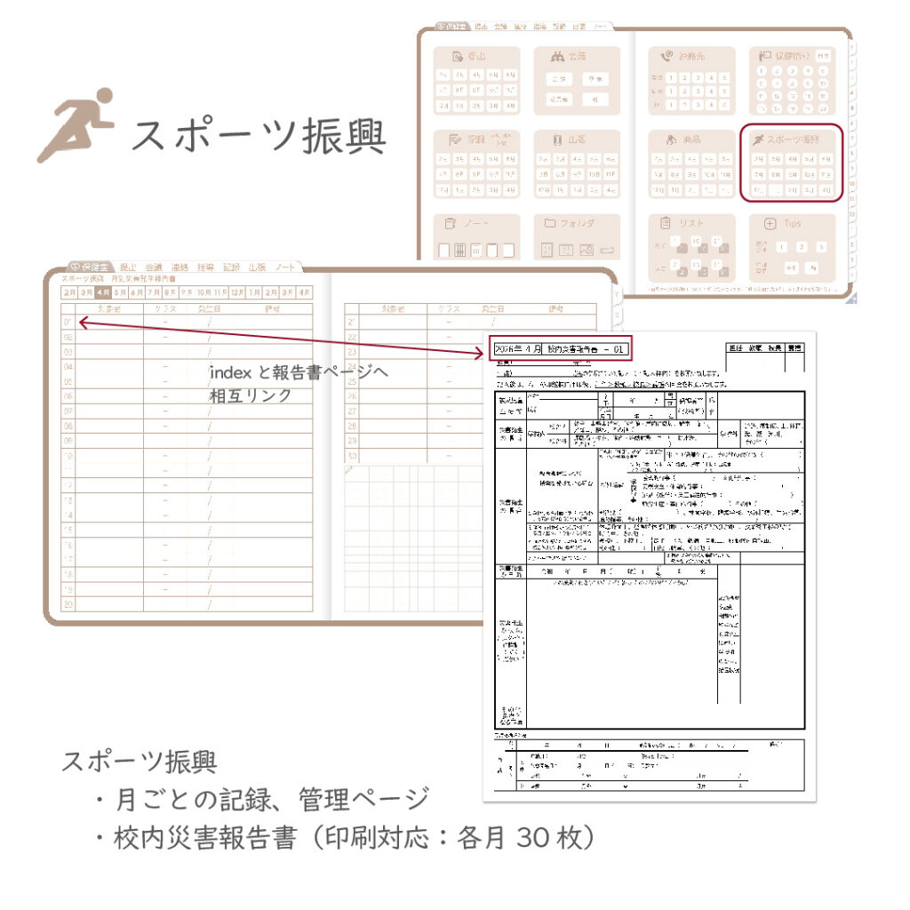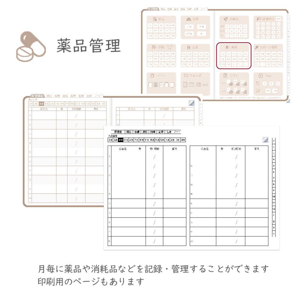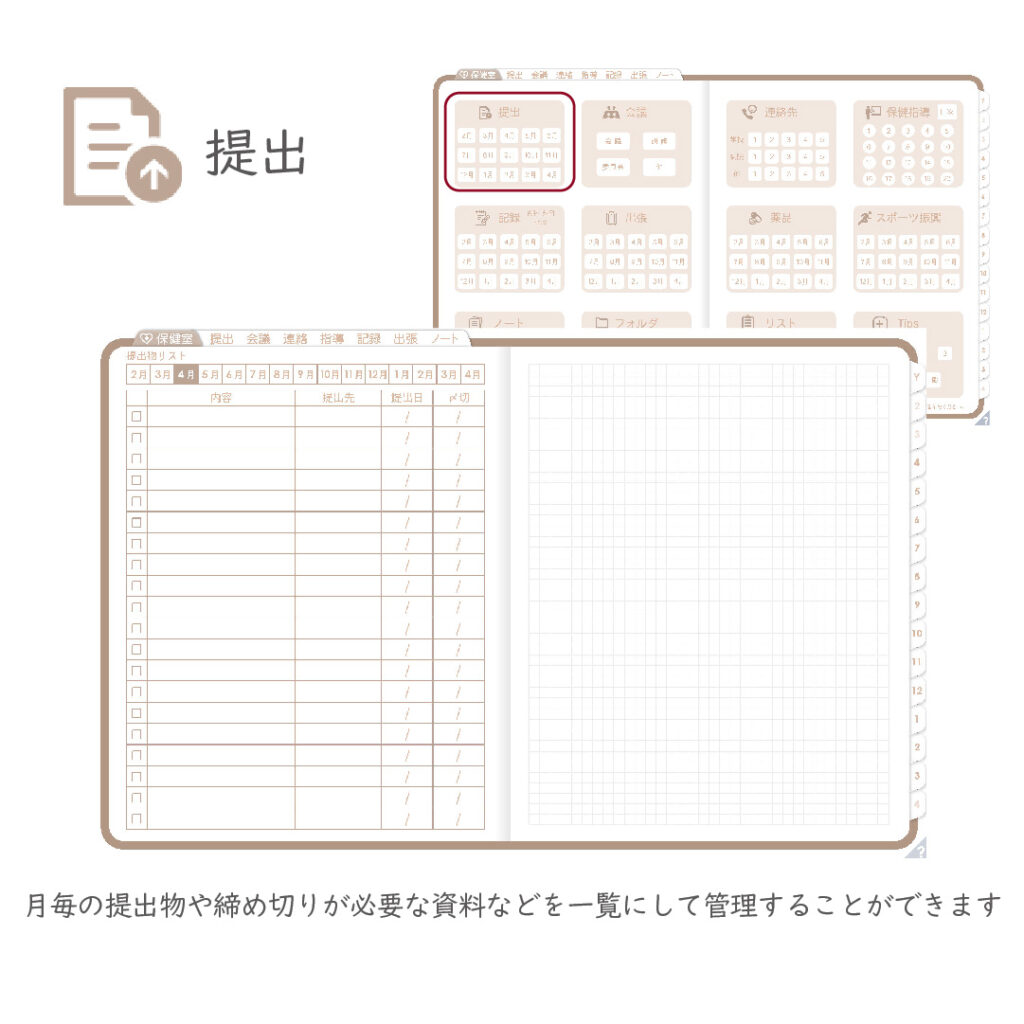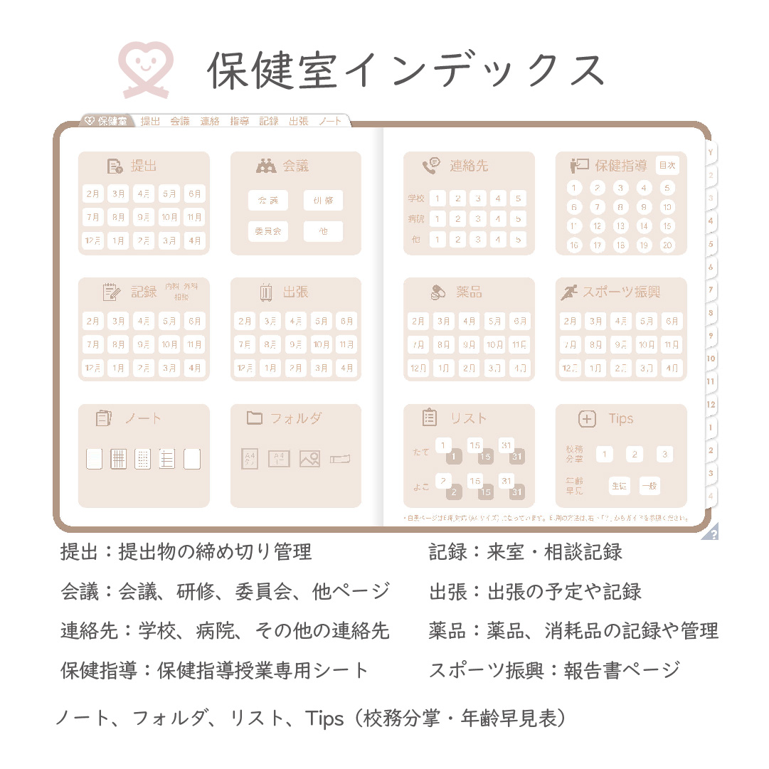 これ一冊で、スケジュール~保健室業務まで対応できます。