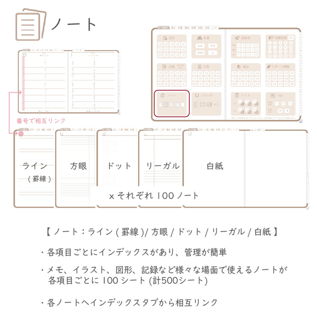 ・ノート5種×各100p/資料フォルダ