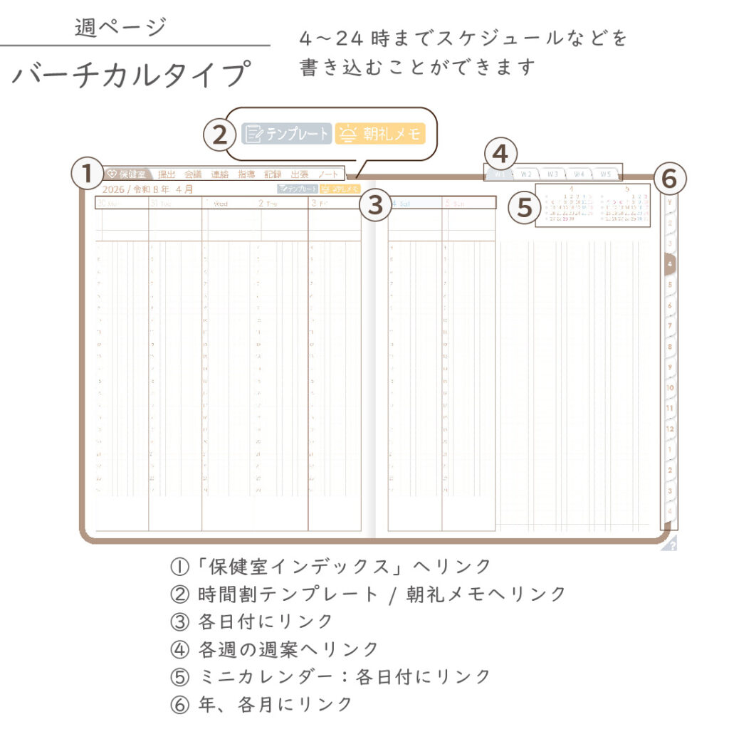 2026年度「ほけんしつ手帳」【週:バーチカル】【色:マロン】