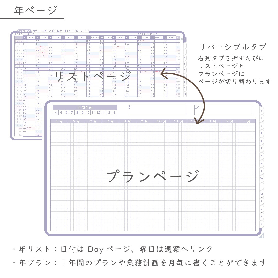 ・年/月に「プランページ」付き(予定と計画を分けて管理)