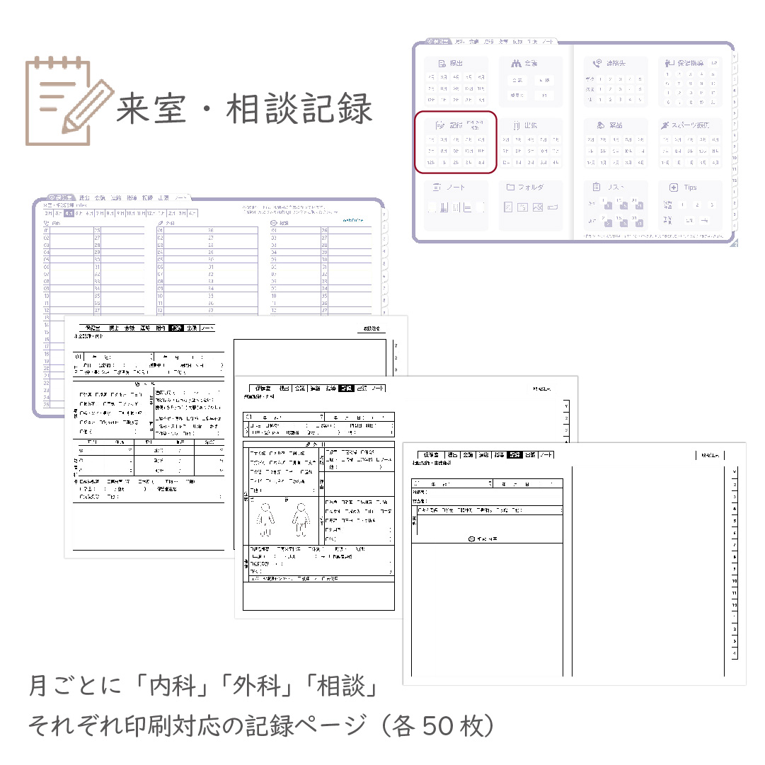保健室で実際に使う業務内容から、必要なシートを厳選。