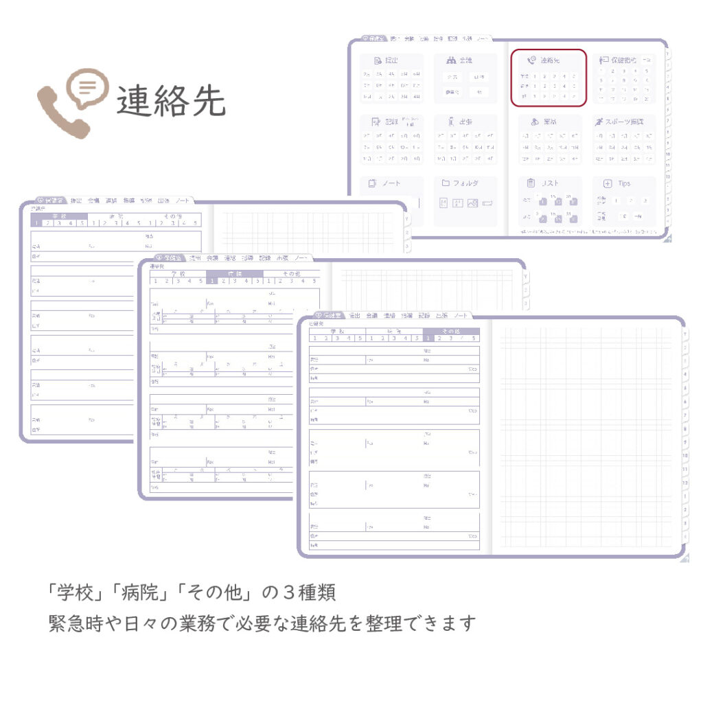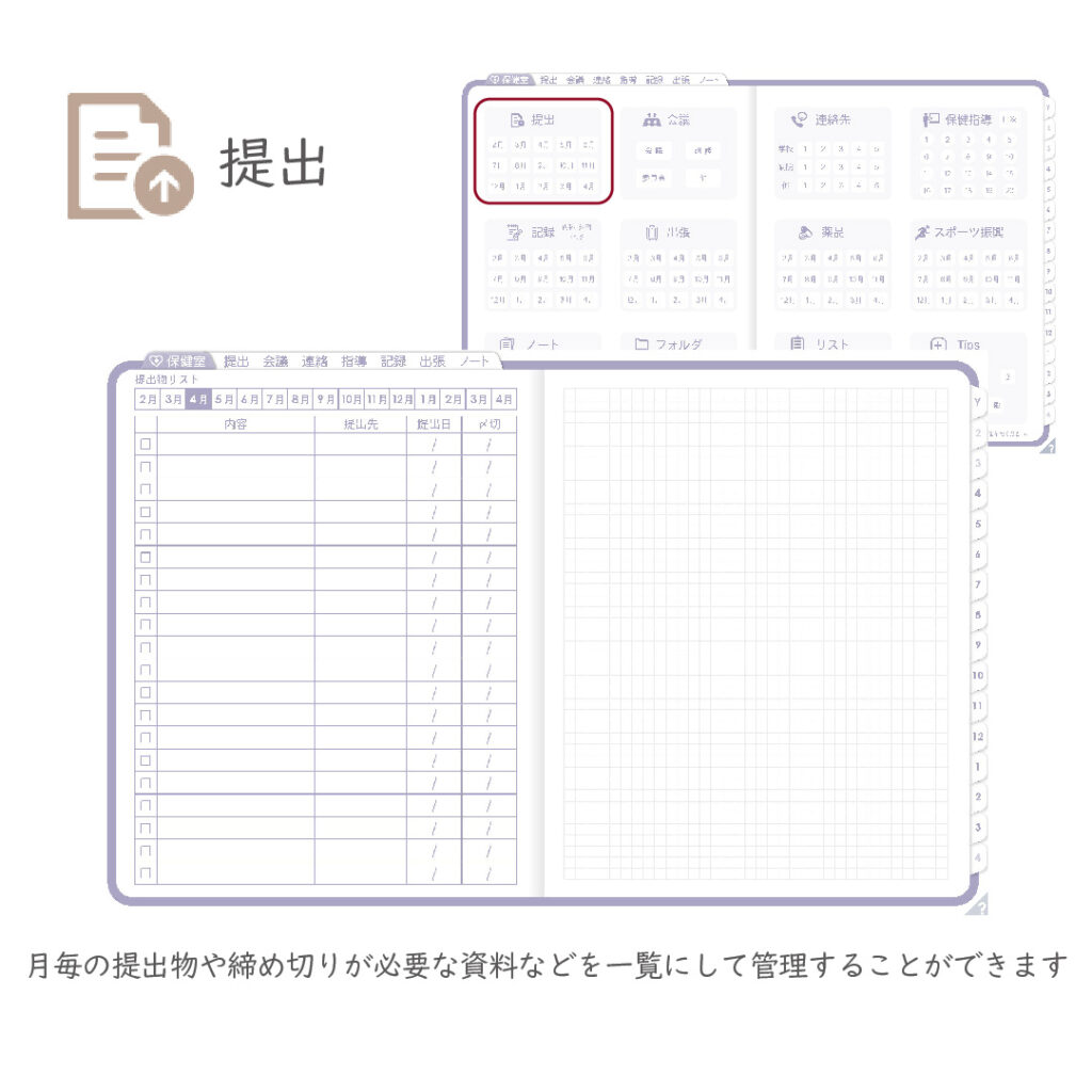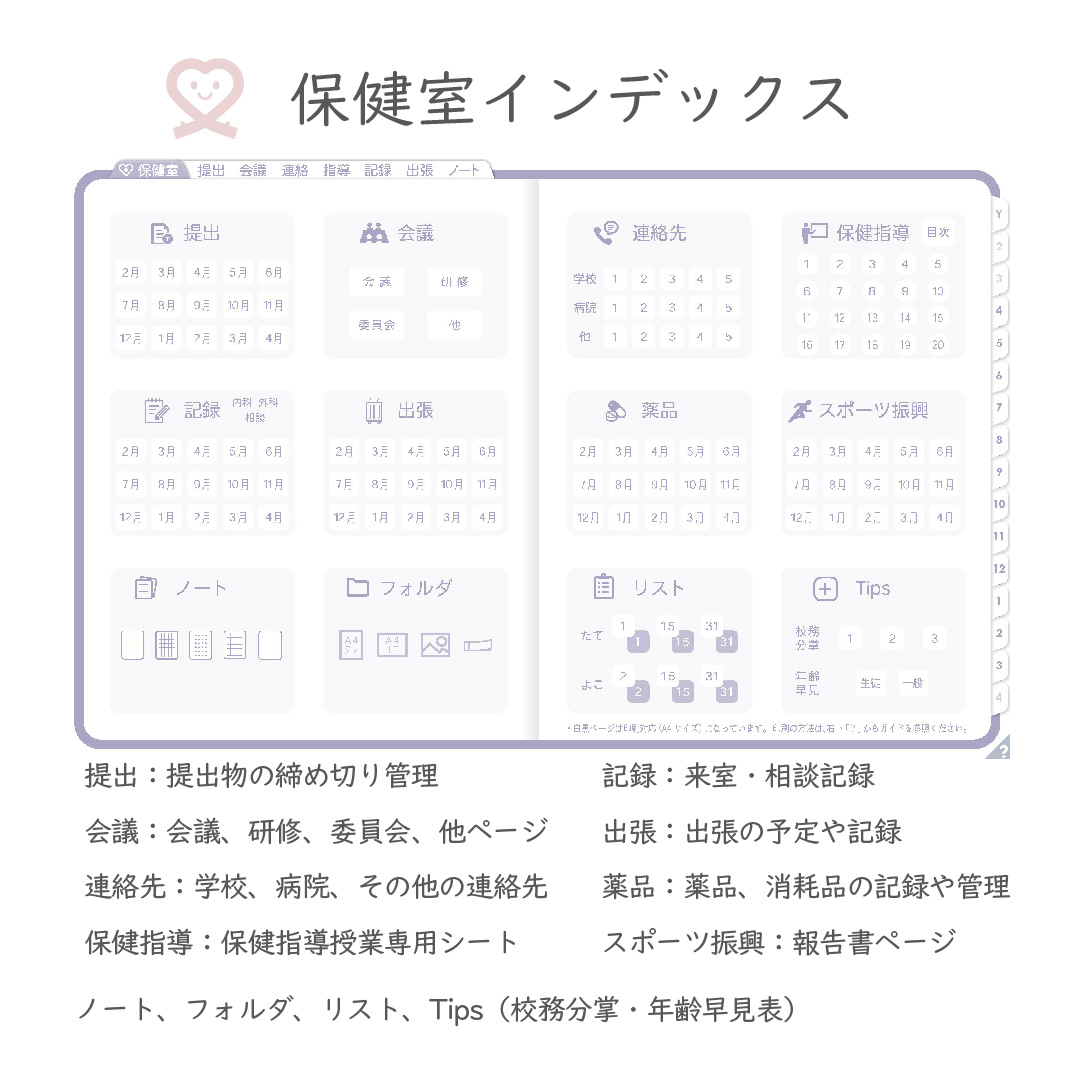 これ一冊で、スケジュール~保健室業務まで対応できます。