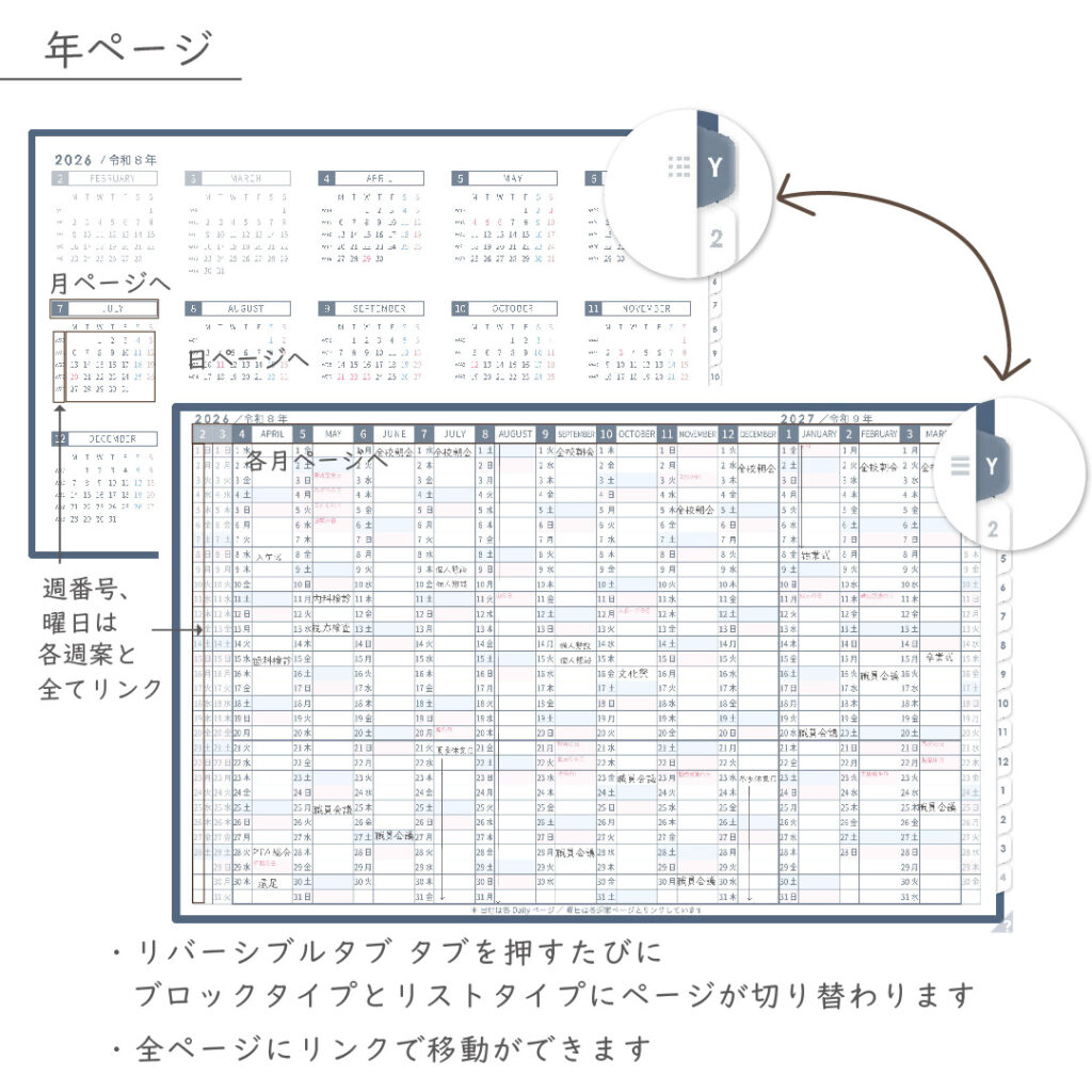 年間・月間・週案・日々の予定をひとつの流れでつなぎ、