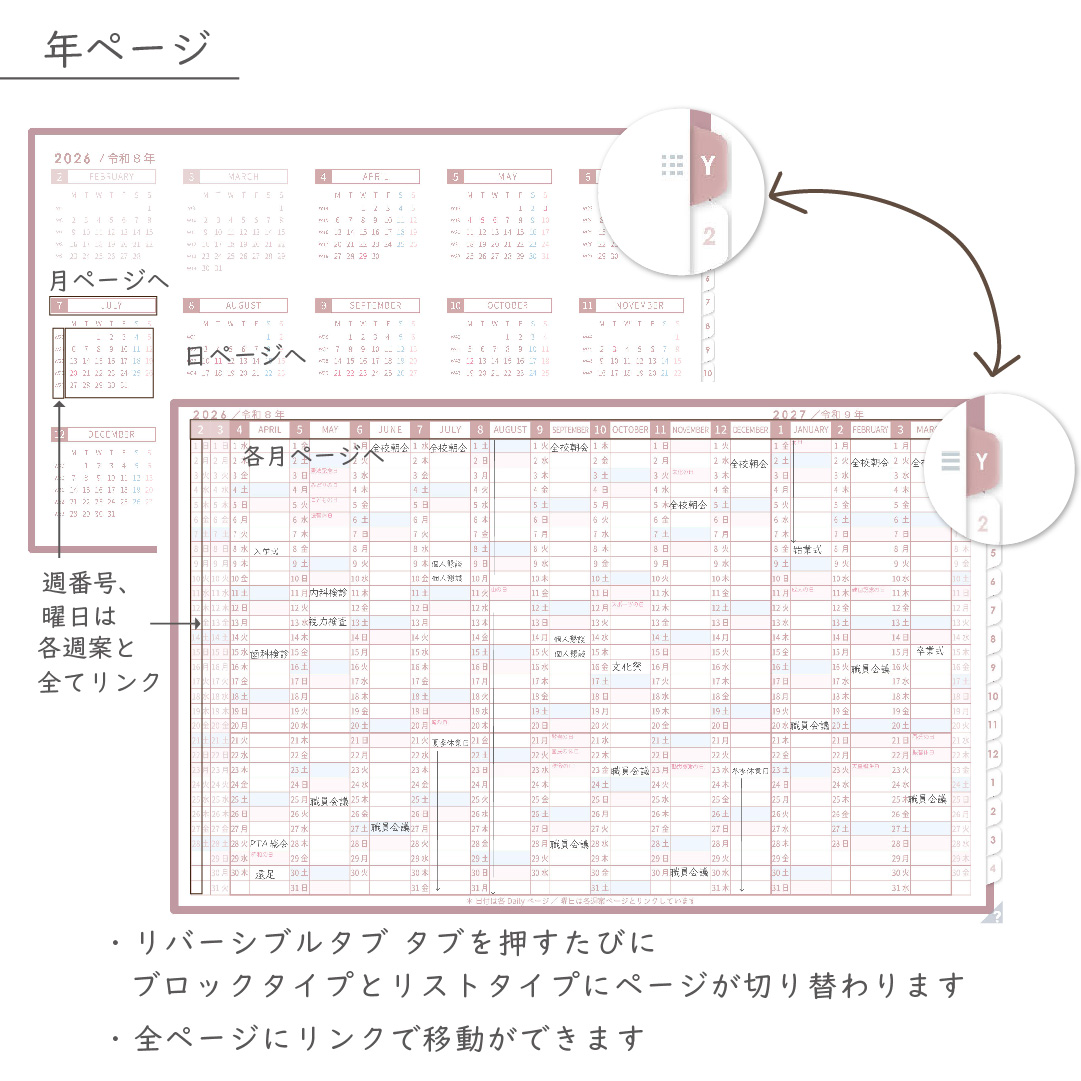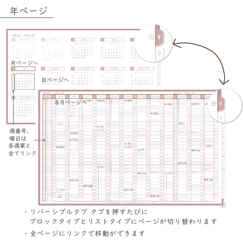 年間・月間・週案・日々の予定をひとつの流れでつなぎ、