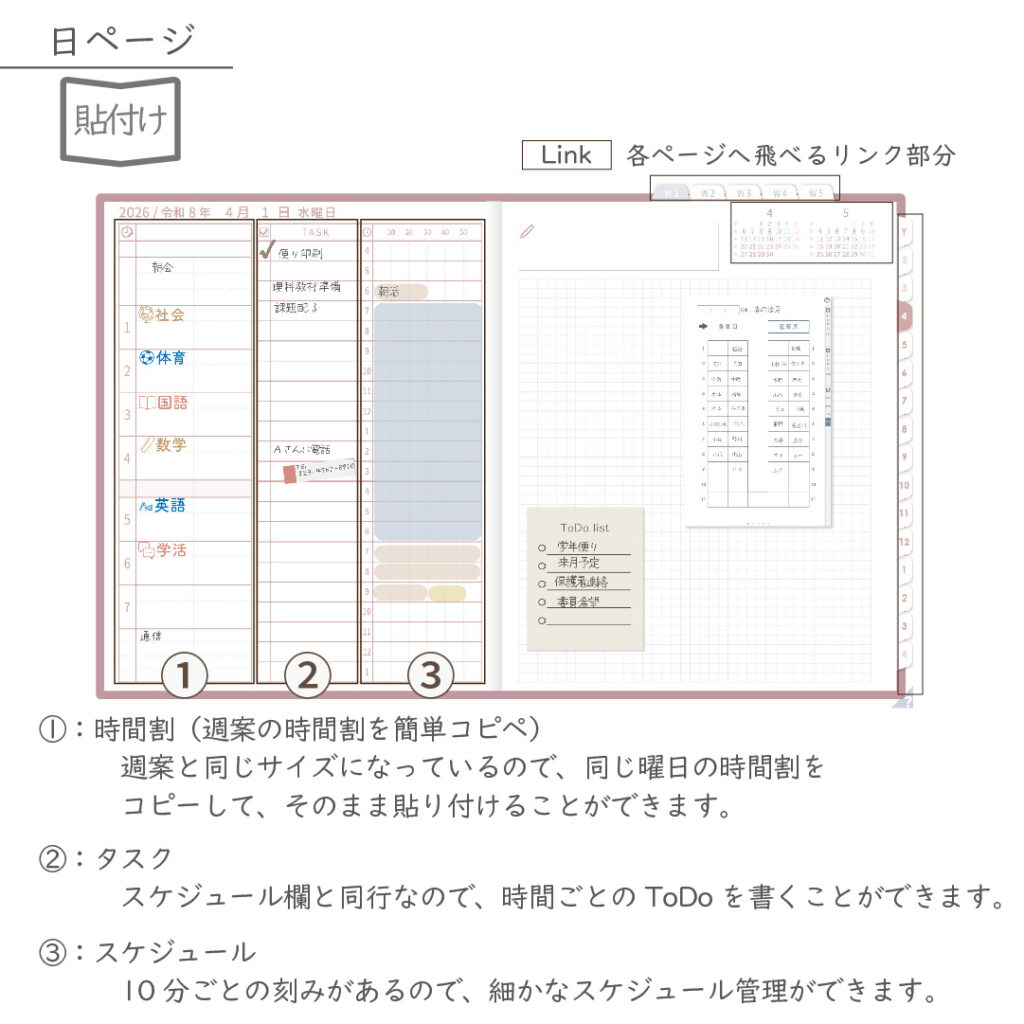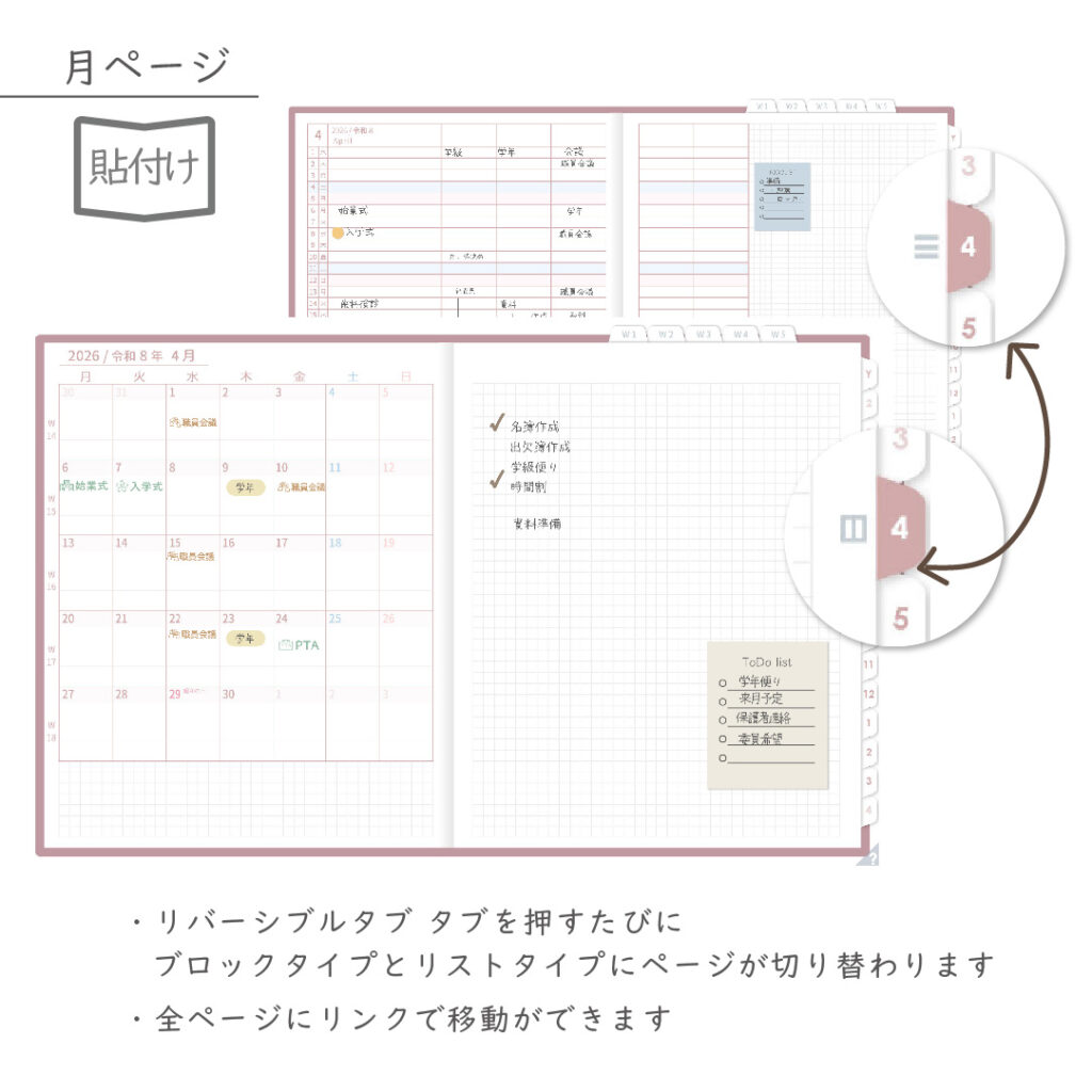 2026年度「先生手帳(中高版)」【ライト:貼付け】【色:サクラ】