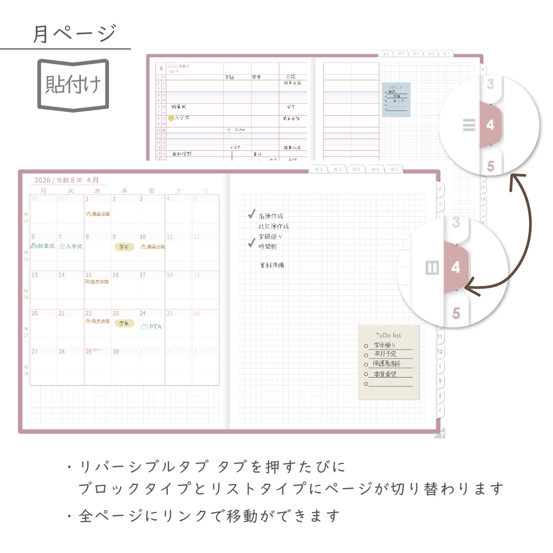 年間・月間・週案・日々の予定をひとつの流れでつなぎ、