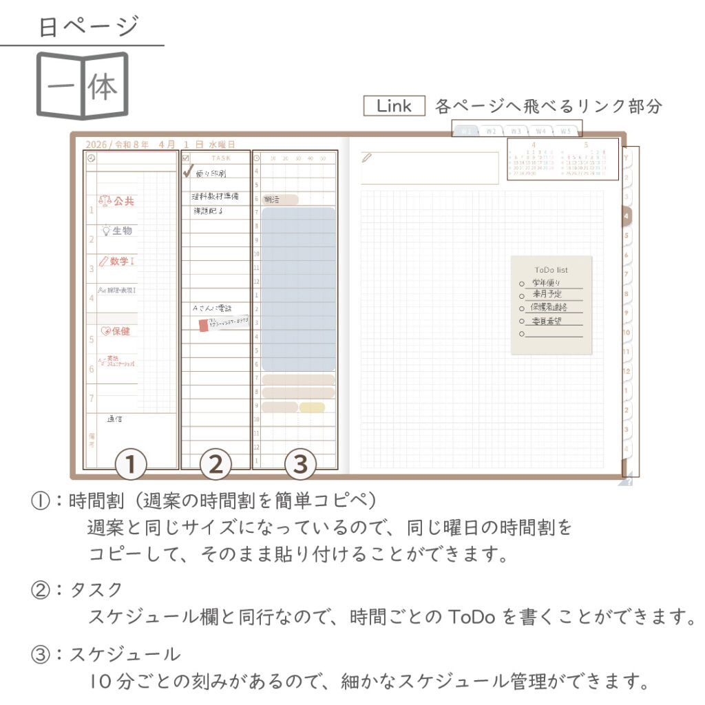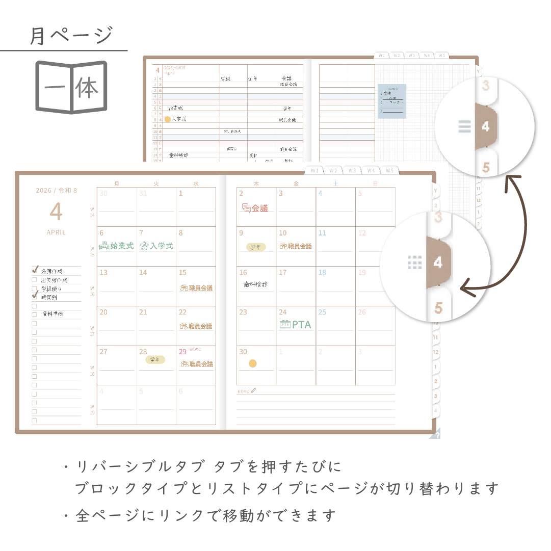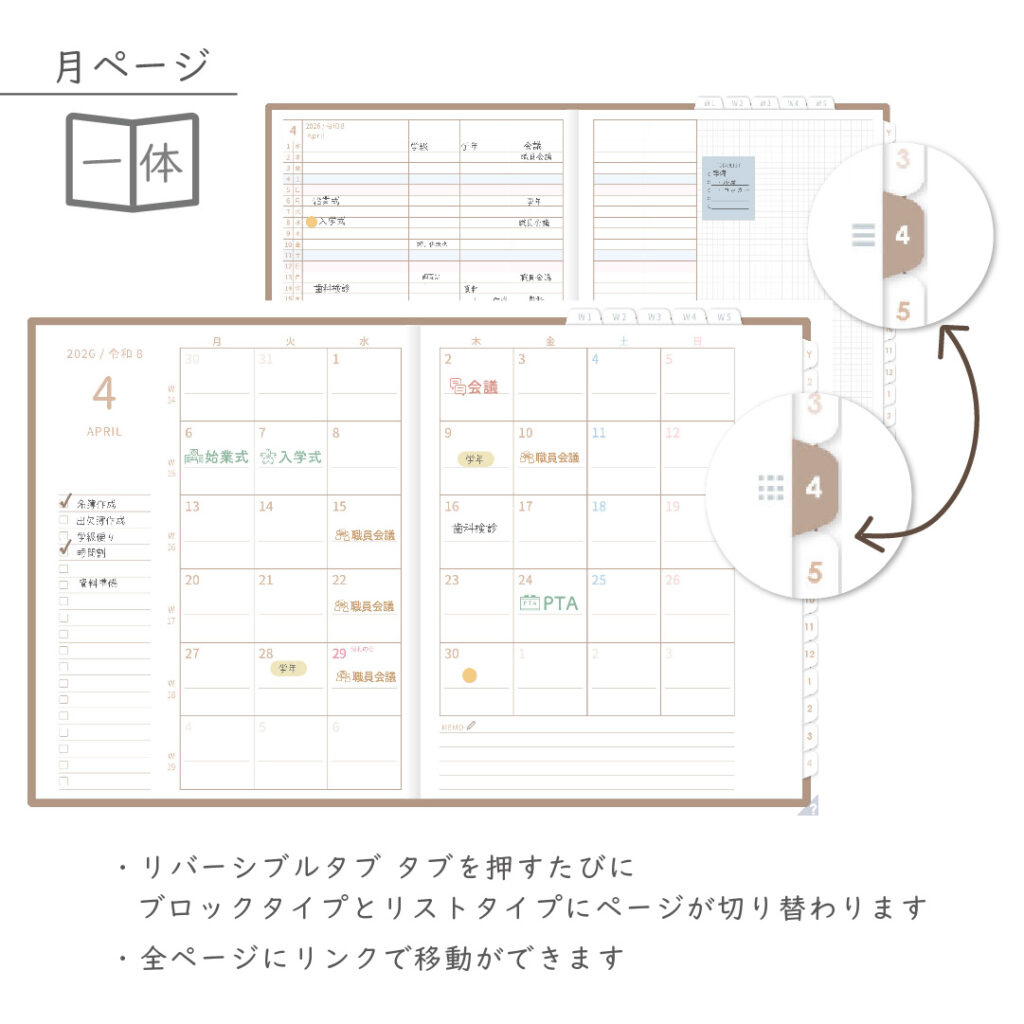 年間・月間・週案・日々の予定をひとつの流れでつなぎ、