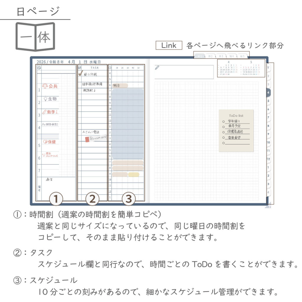 年間・月間・週案・日々の予定をひとつの流れでつなぎ、
