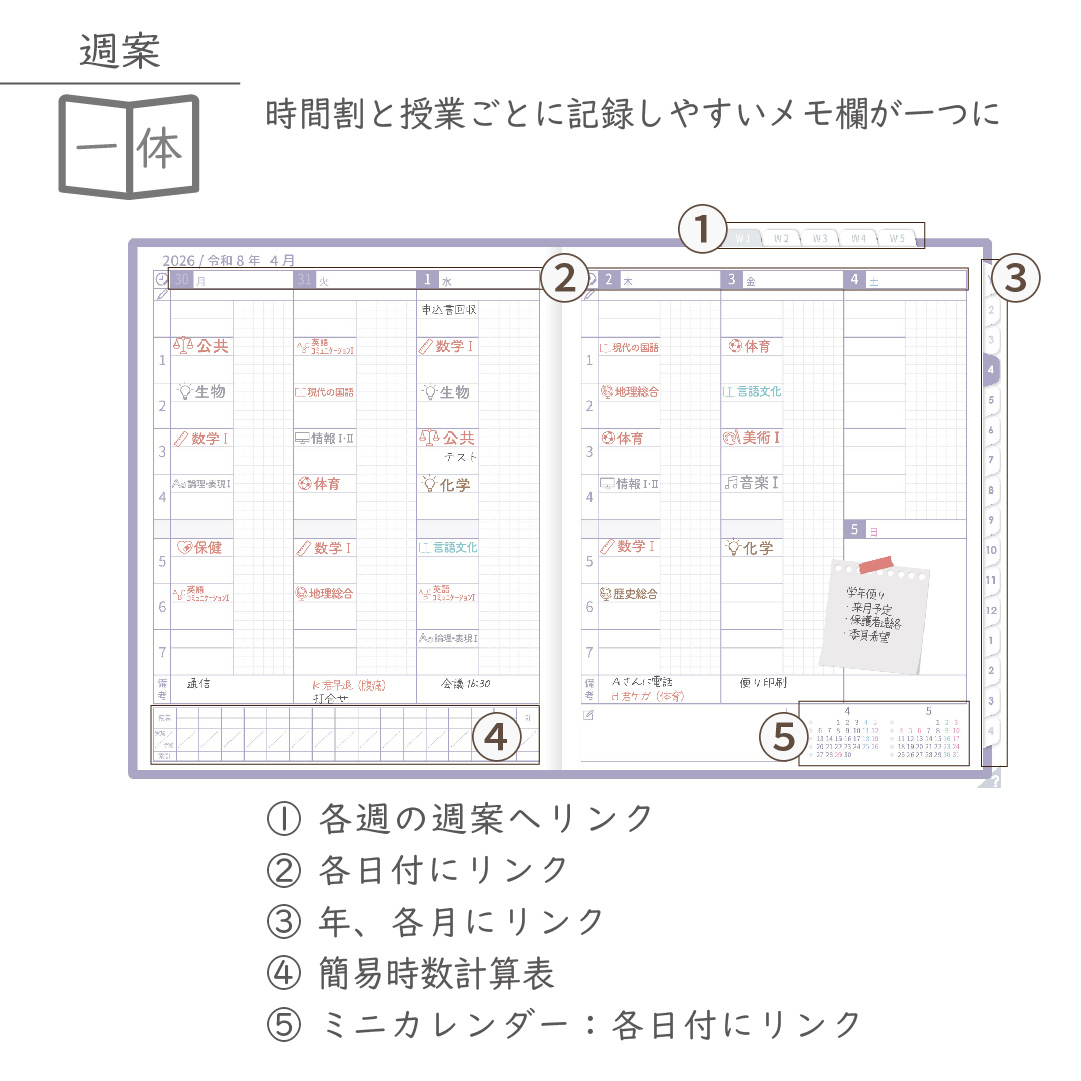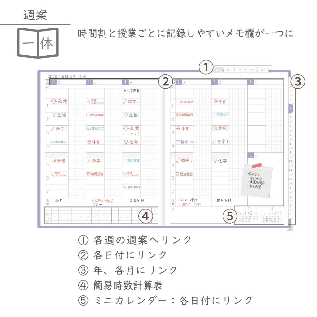 2026年度「先生手帳(中高版)」【ライト:一体】【色:スミレ】