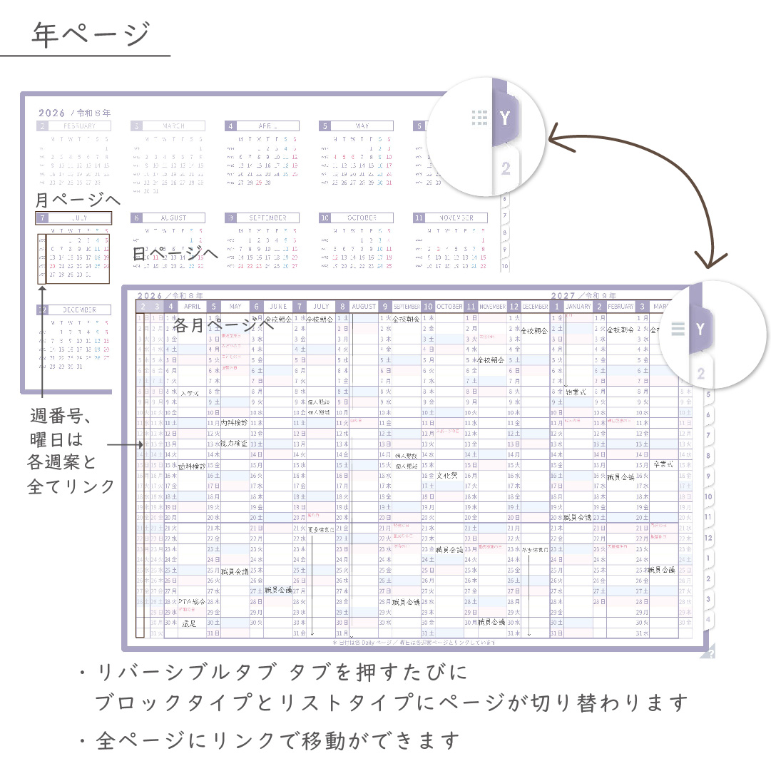 年間・月間・週案・日々の予定をひとつの流れでつなぎ、