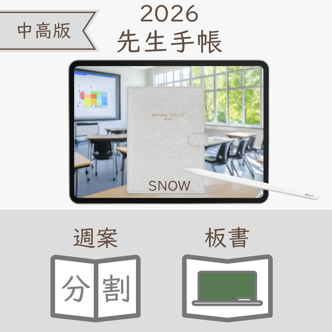 2026年度「先生手帳(中高版)」【レギュラー:分割/黒板】【色:スノー】