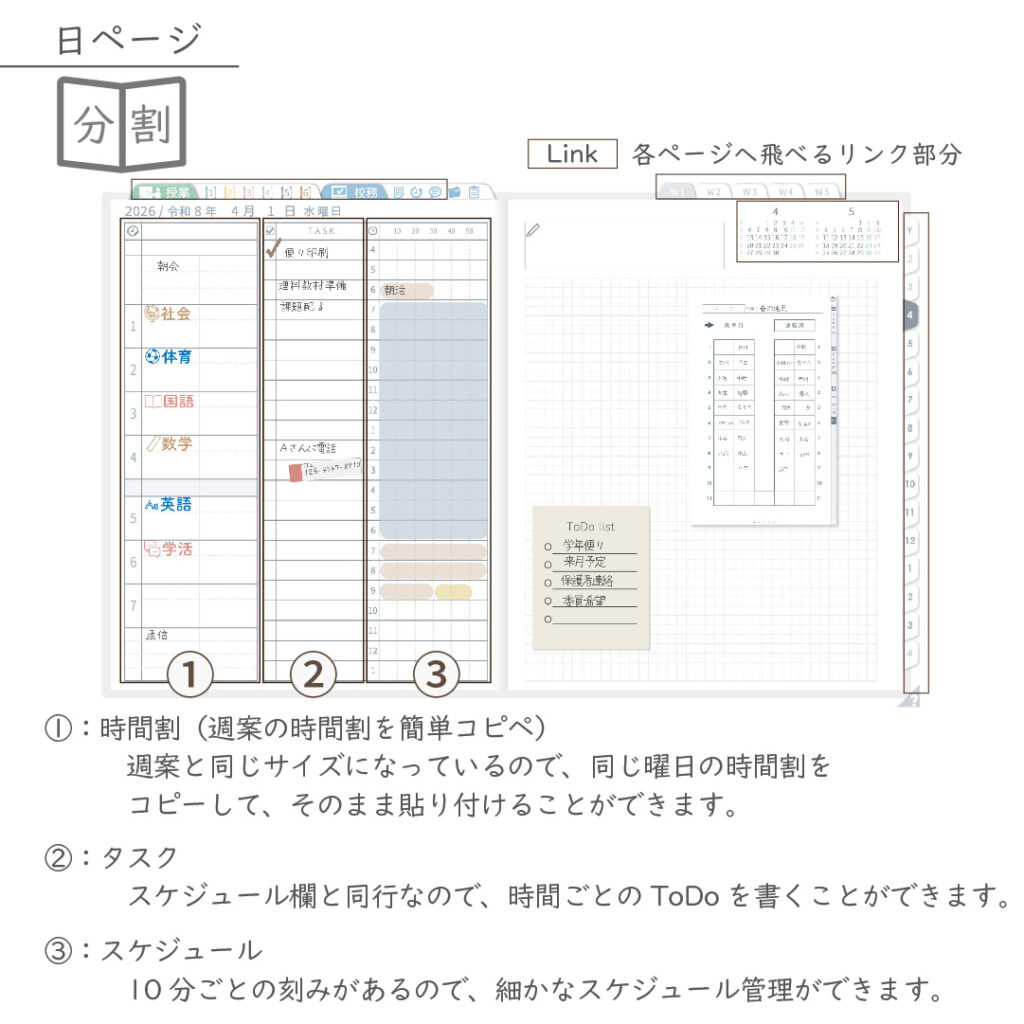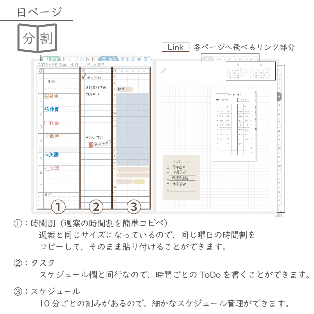 iPadのノートアプリGoodnotesで使用する、デジタル先生手帳。授業計画+校務管理+スケジュールを一元管理!