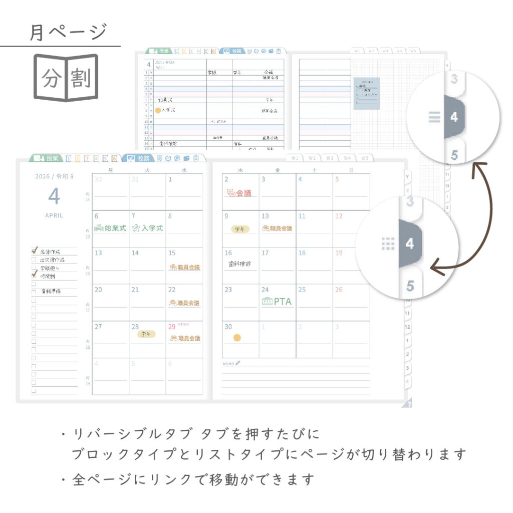 ・年間・月間ページ(※1)はそれぞれリバーシブルで2種類のページを簡単切り替え