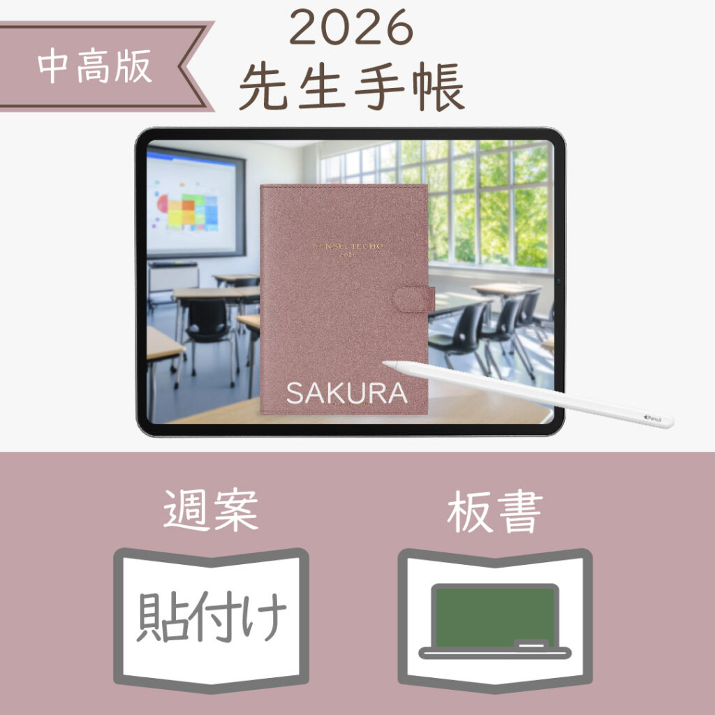 2026年度「先生手帳(中高版)」【レギュラー:貼付け/黒板】【色:サクラ】