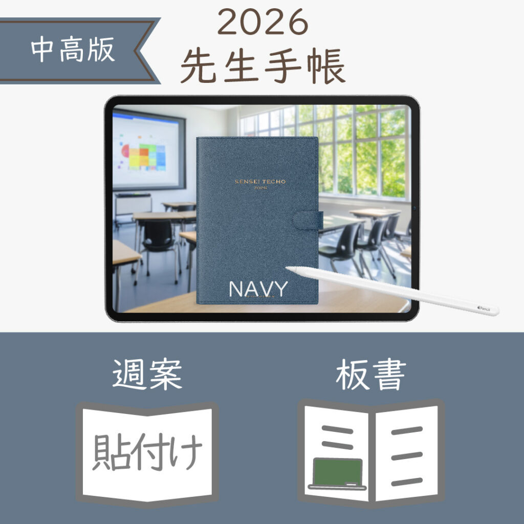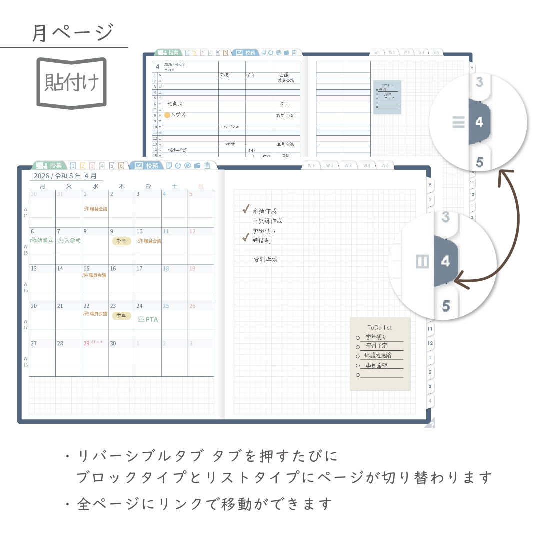2026年度「先生手帳(中高版)」【レギュラー:貼付け/ノート】【色:ネイビー】