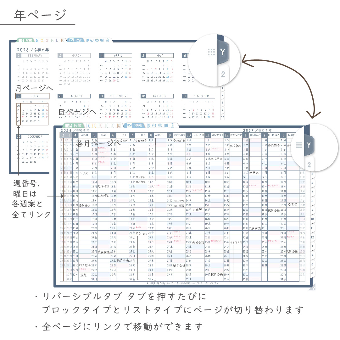 ・年間・月間ページ(※1)はそれぞれリバーシブルで2種類のページを簡単切り替え