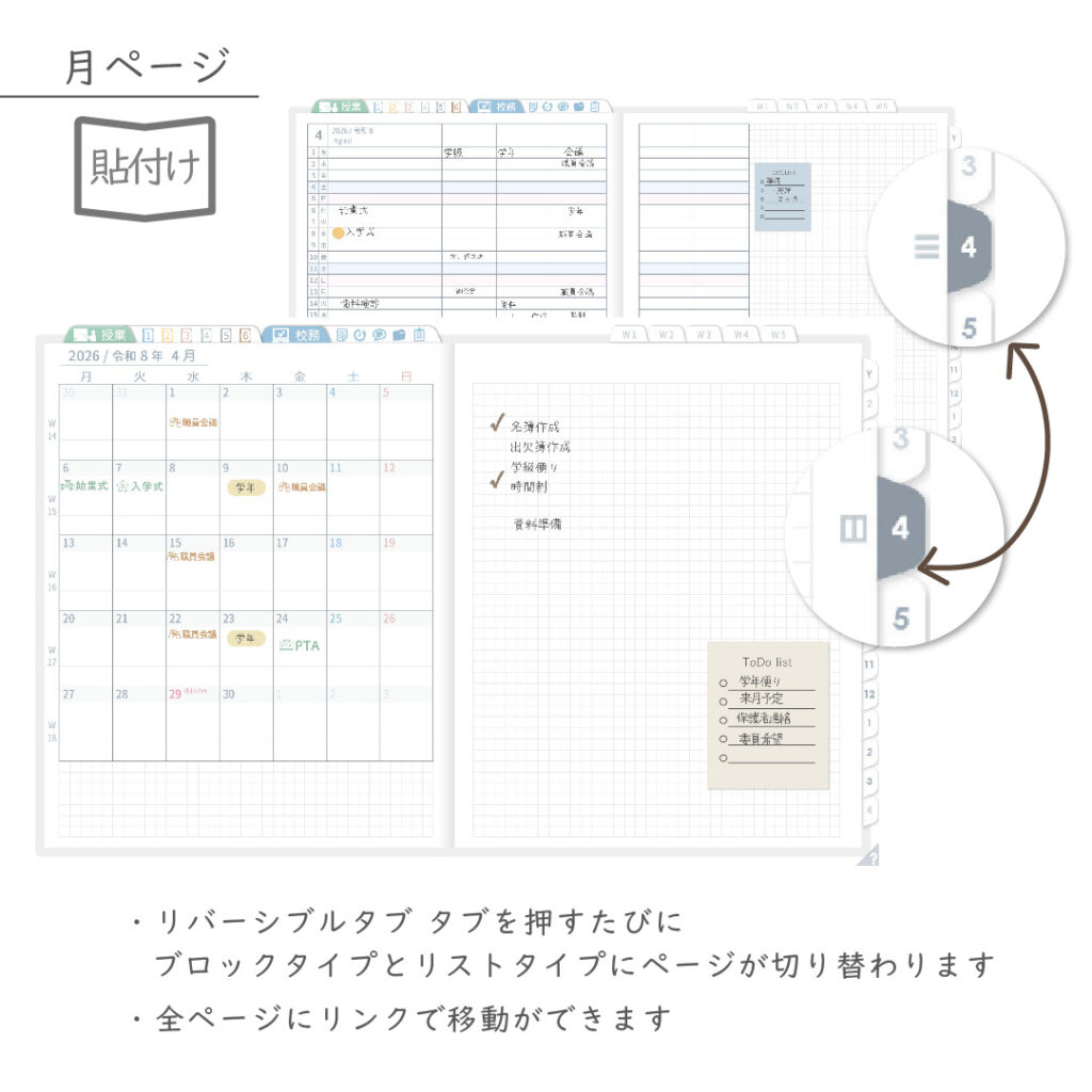 ・年間・月間ページ(※1)はそれぞれリバーシブルで2種類のページを簡単切り替え