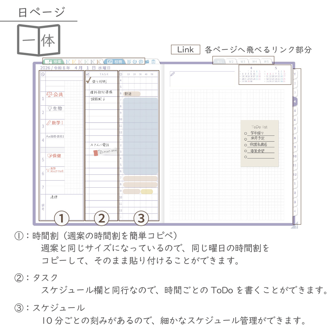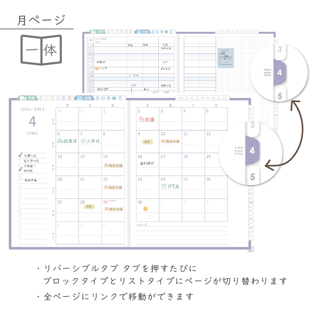 2026年度「先生手帳(中高版)」【レギュラー:一体/黒板】【色:スミレ】