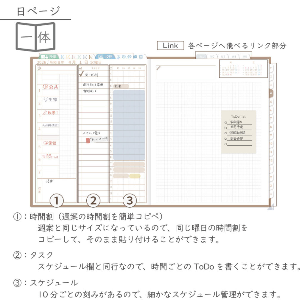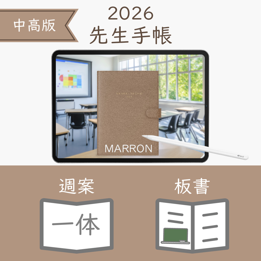 2026年度「先生手帳(中高版)」【レギュラー:一体/ノート】【色:マロン】
