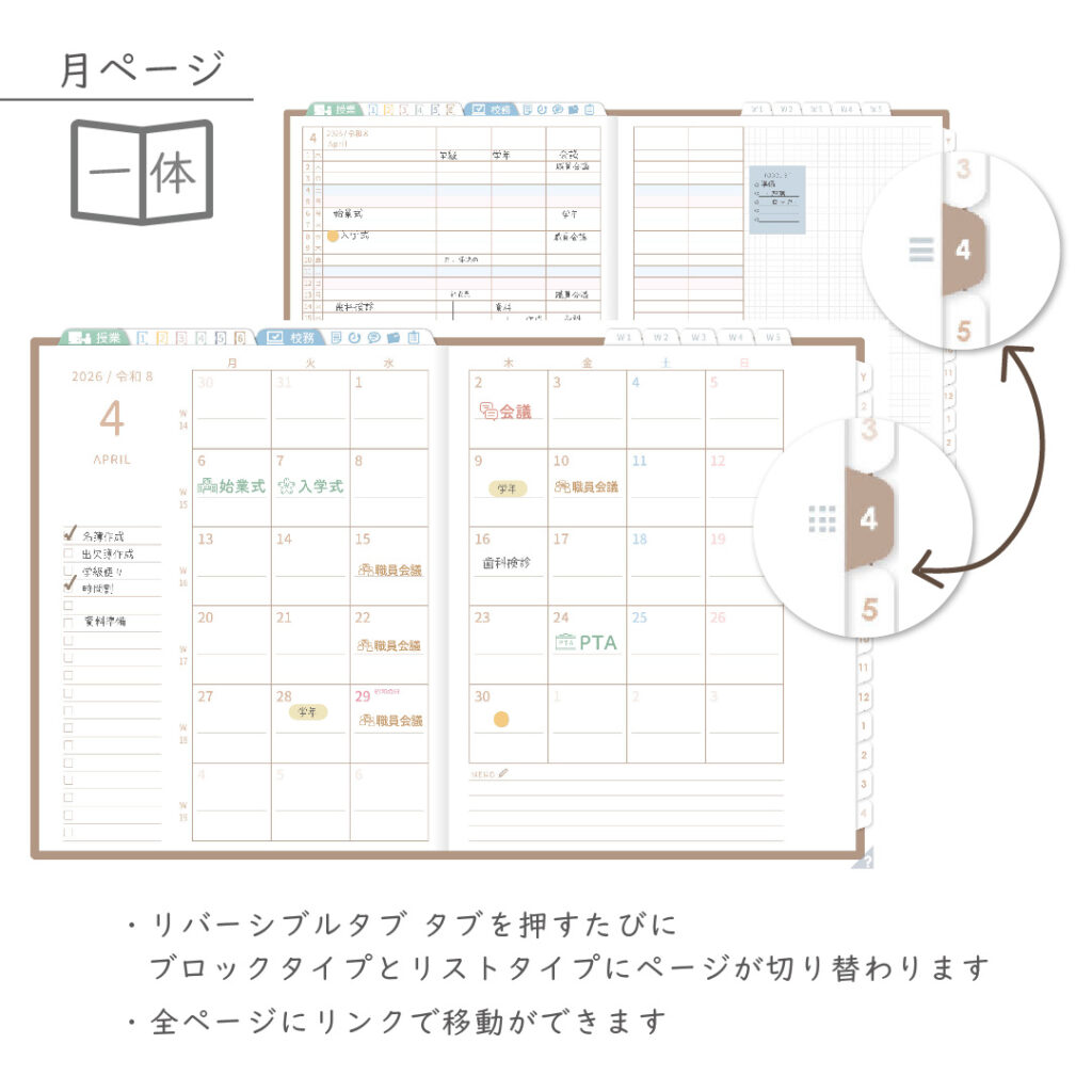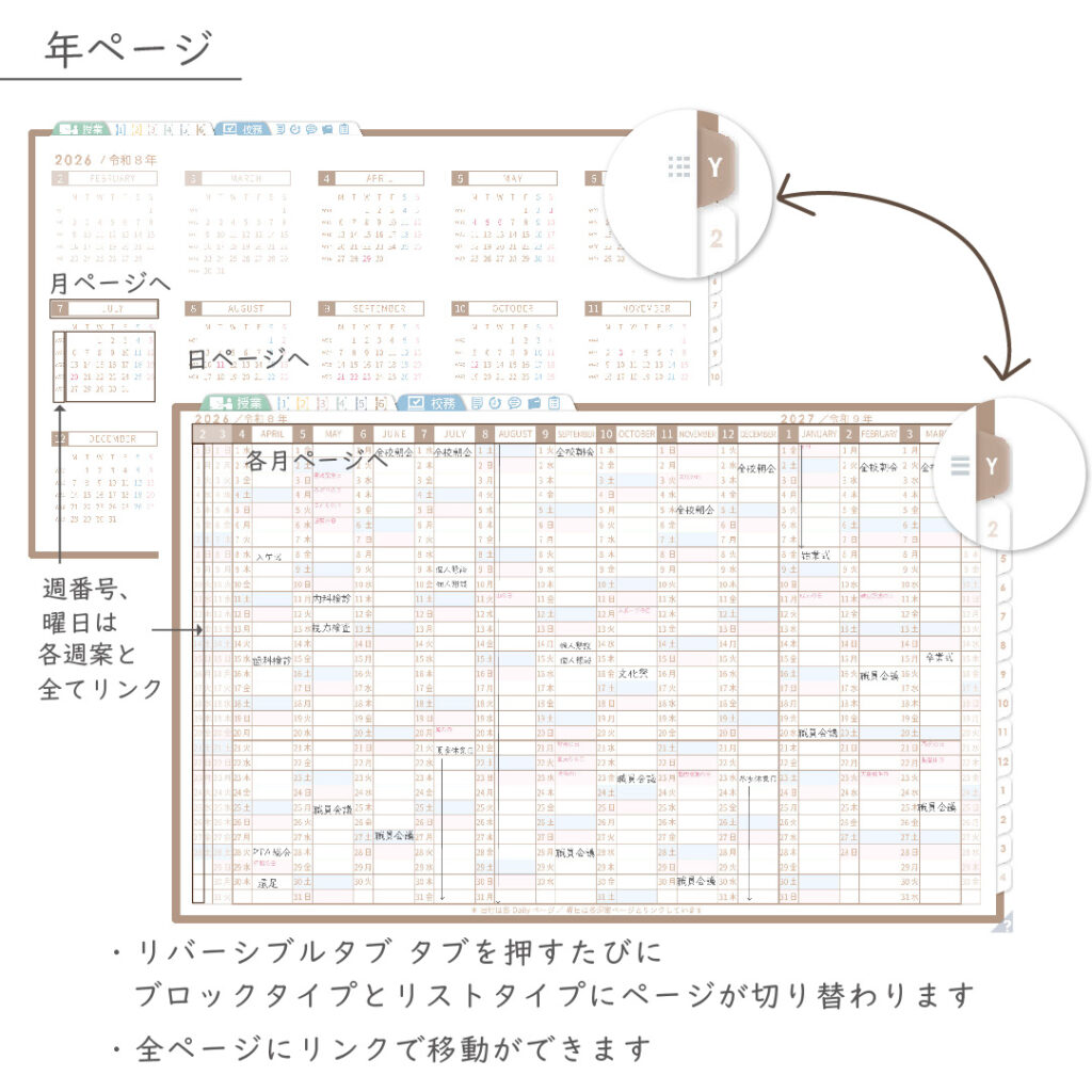 ・年間・月間ページ(※1)はそれぞれリバーシブルで2種類のページを簡単切り替え