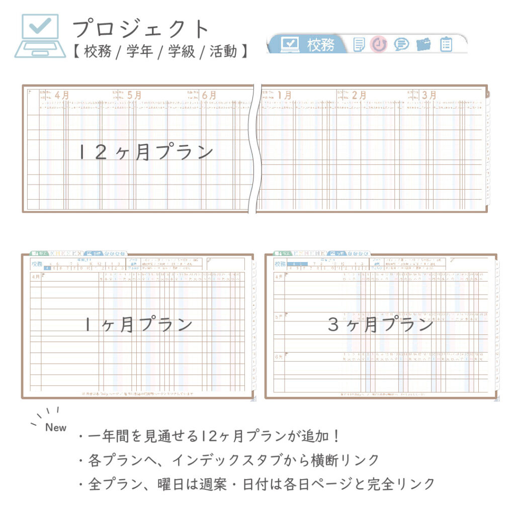 ・校務、学年、学級、活動など内容ごとに12ヶ月/3ヶ月/1ヶ月ごとのプロジェクトシート