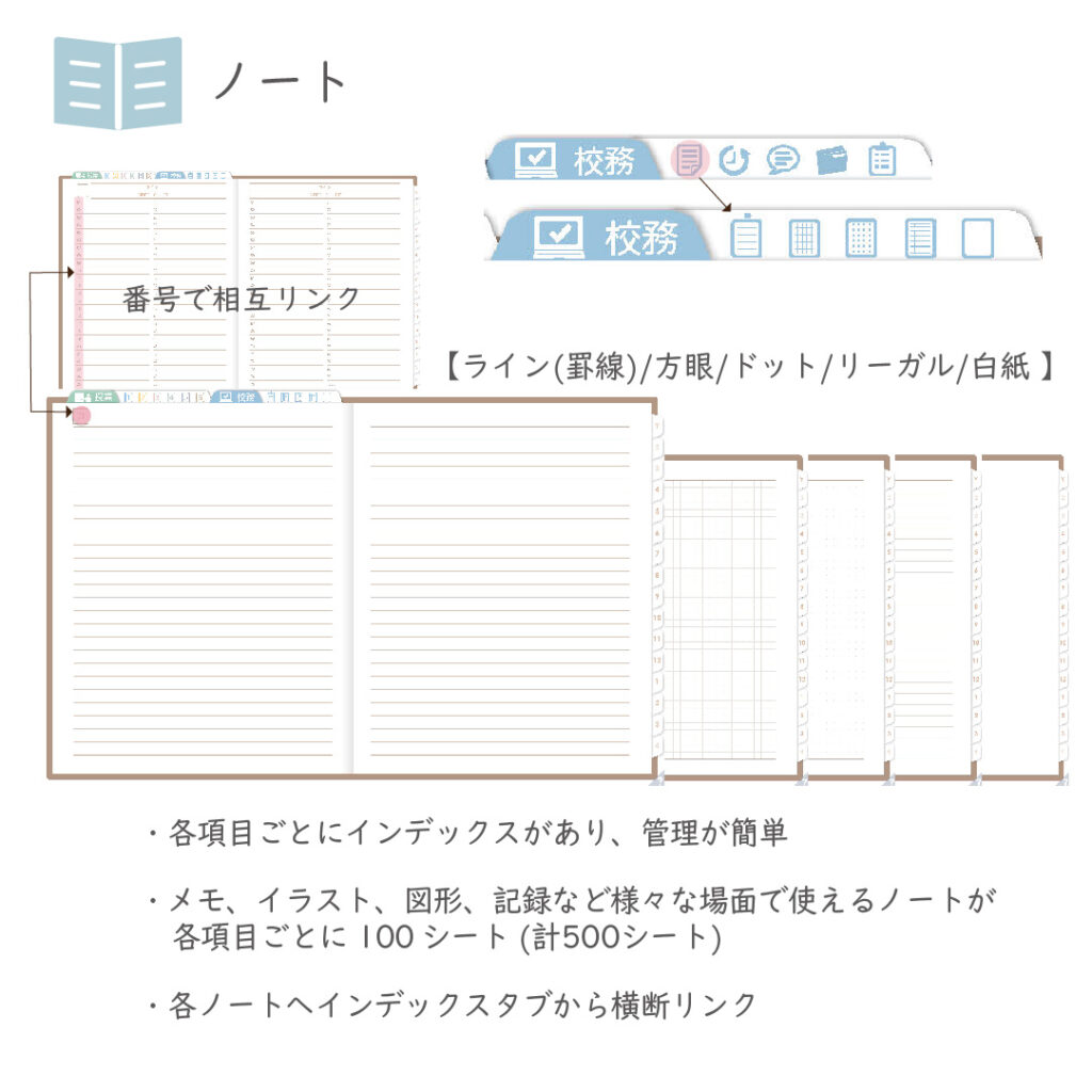 ※2:1週間見開きタイプ/週案+記録の分割タイプ/週案+貼付けスペースの貼付けタイプ