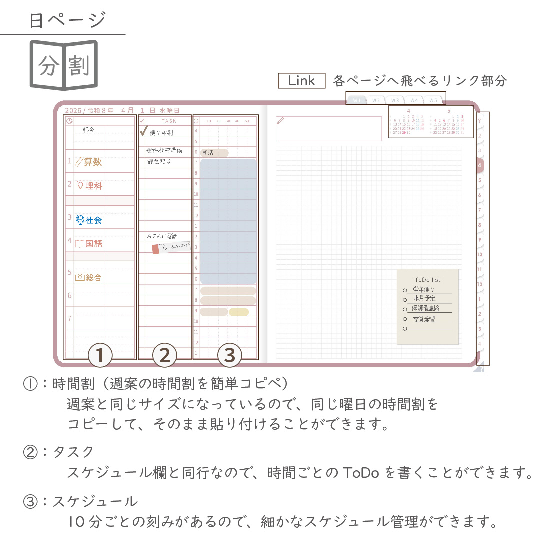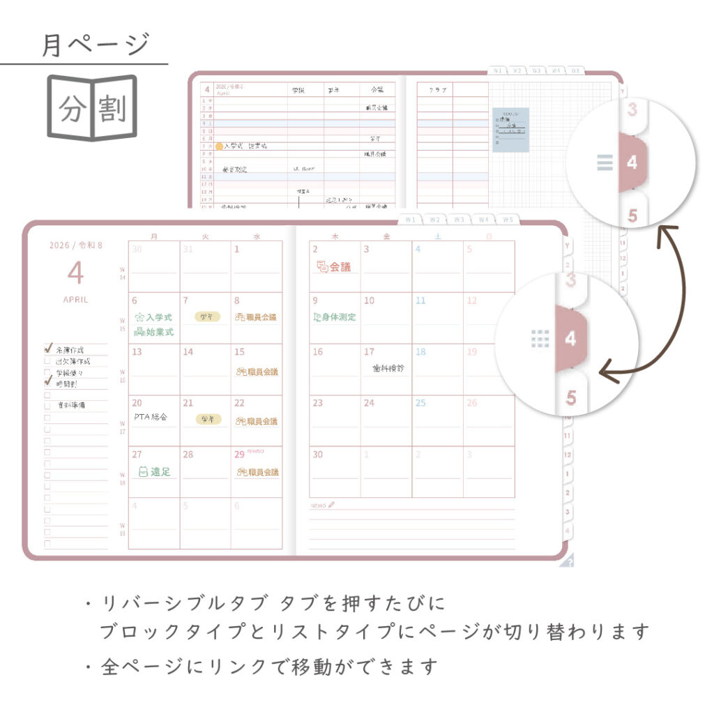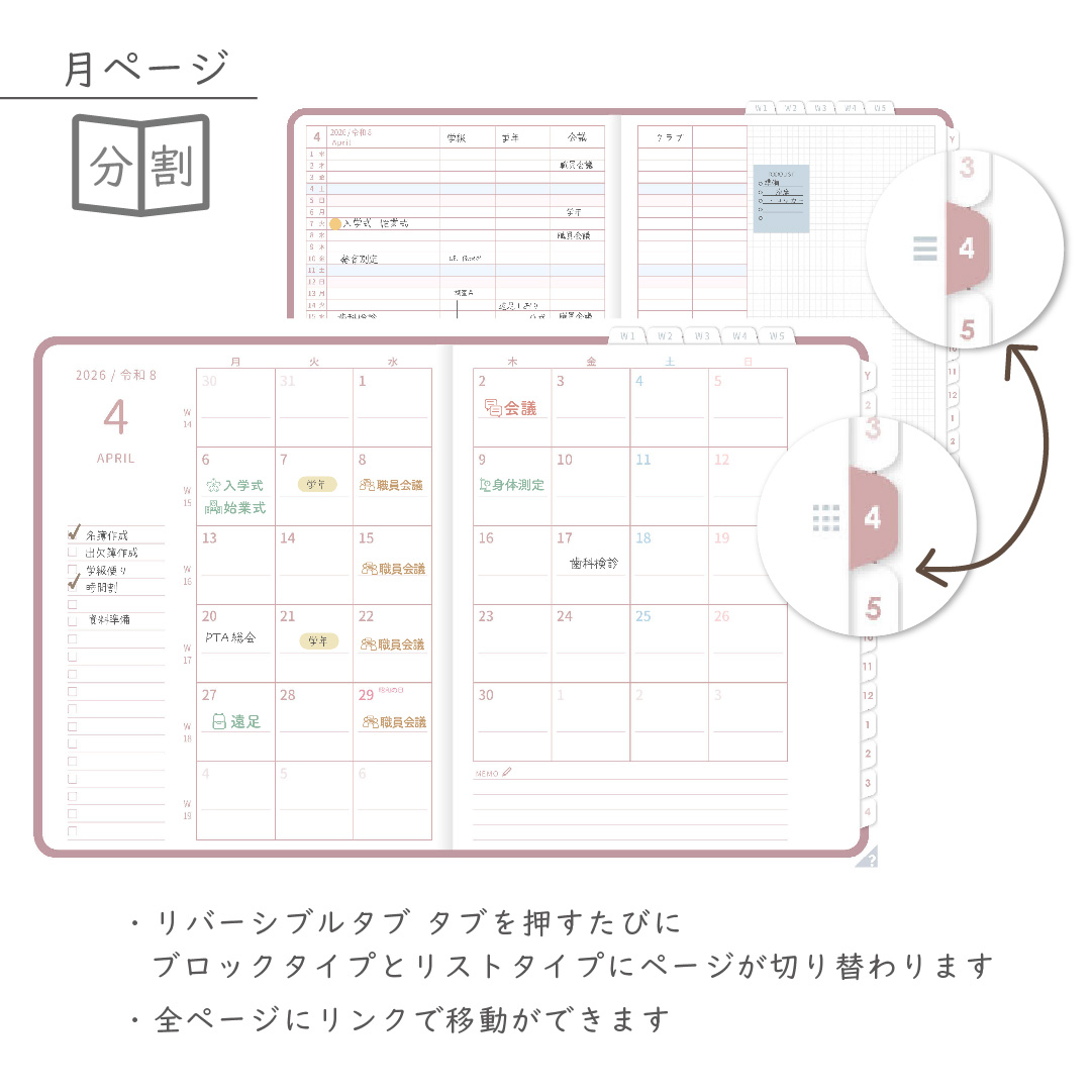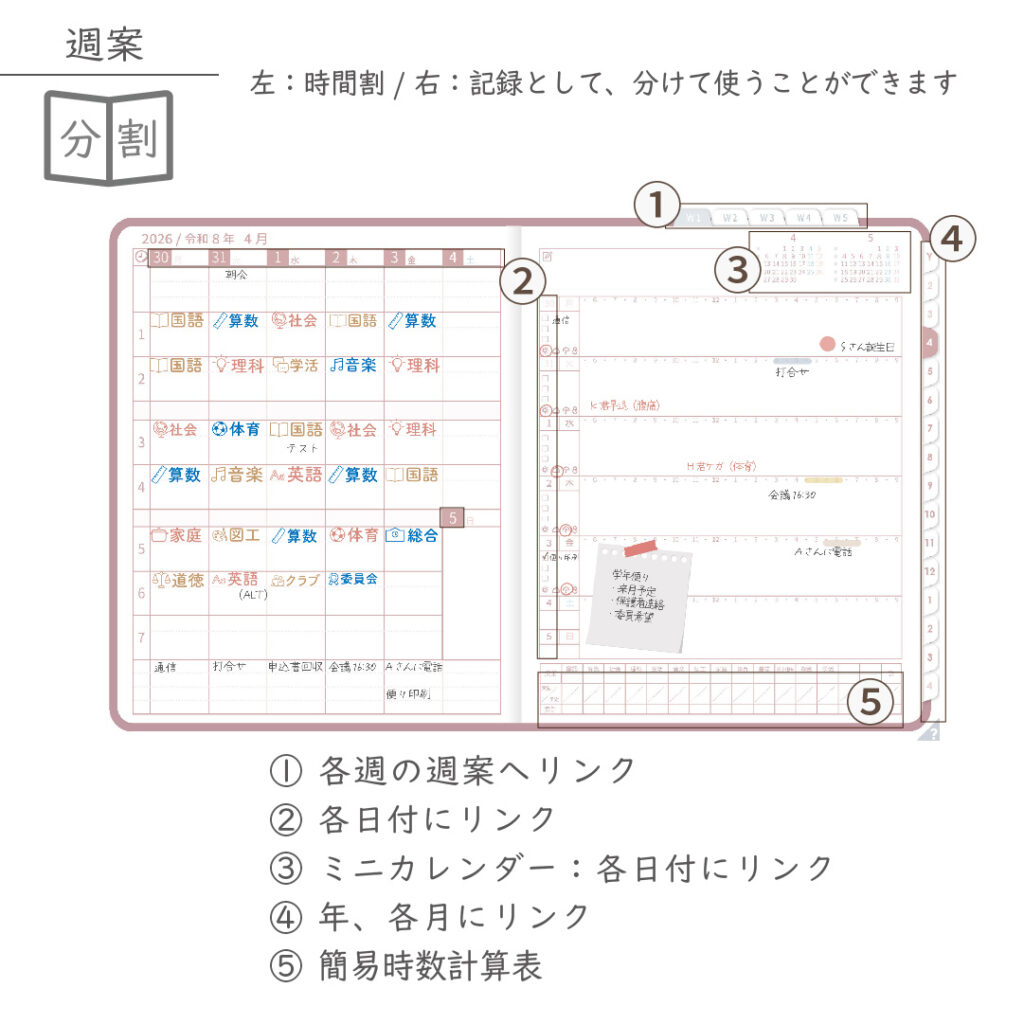2026年度「先生手帳(小学校版)」【ライト:分割】【色:サクラ】